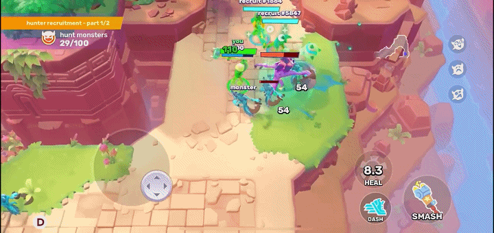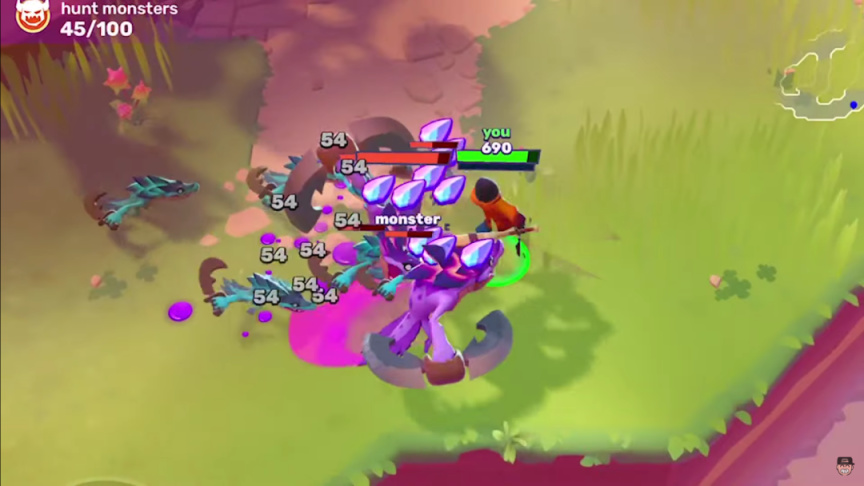 玩法上,僅從目前YouTube主播放出的解禁內容來看,mo.co是一款偏輕度的MMO,它最核心的玩法循環有那麼一點像《怪物獵人》: