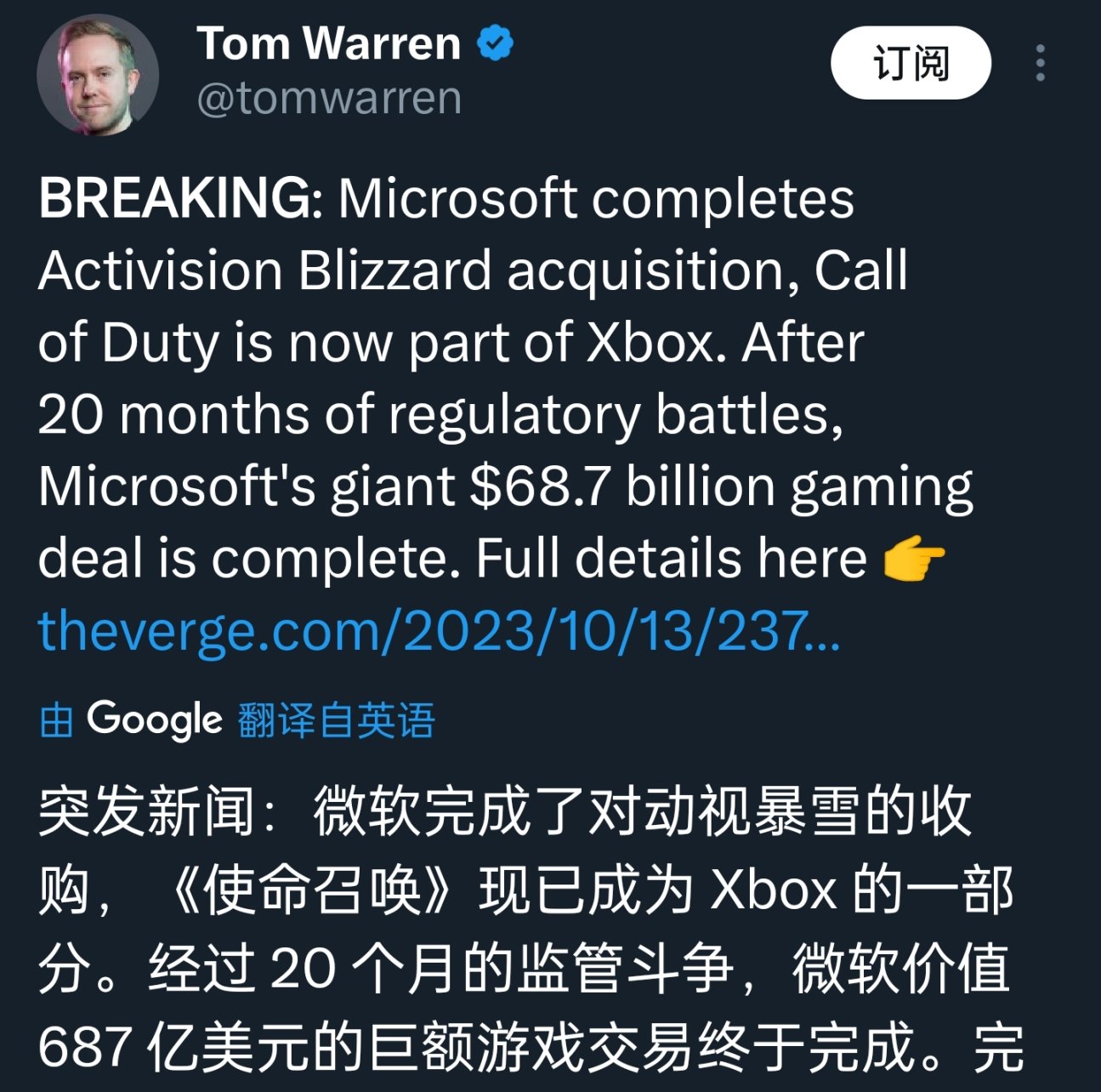 对于那些喜爱Activision、Blizzard和King游戏的数百万粉丝,我们希望您知道,今天是玩游戏的好日子。您是这些游戏系列的灵魂和核心,我们很荣幸能够将您视为我们社区的一部分。无论您是在Xbox、PlayStation、任天堂、PC还是移动设备上玩游戏,都欢迎您——即使Xbox不是您玩最喜欢的系列游戏的地方,我们也欢迎您。因为当每个人都在游戏时,我们都是赢家。我们相信我们今天的消息将为更多游玩方式打开一扇可能性的大门。感谢您一直以来的支持。未来几个月我们还有很多更多的计划——我对未来感到非常激动,迫不及待地想要与您分享。
