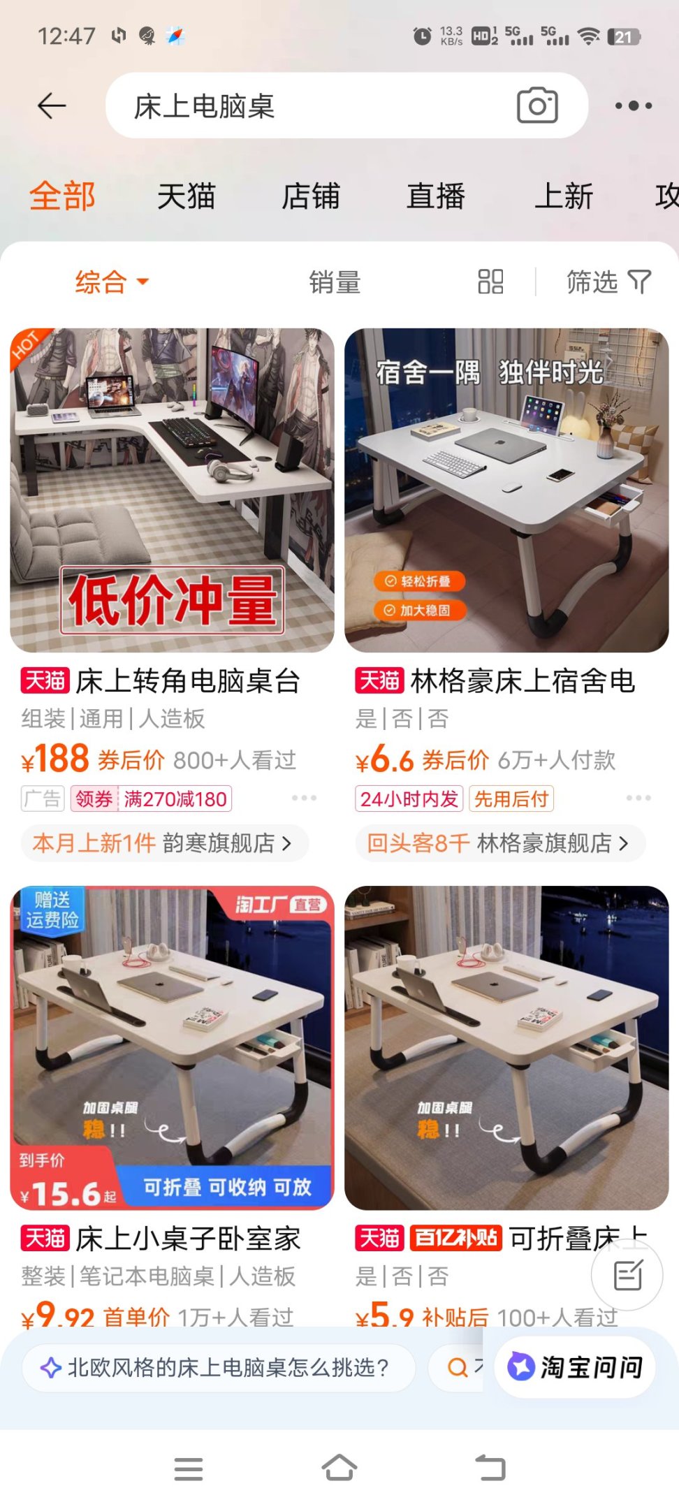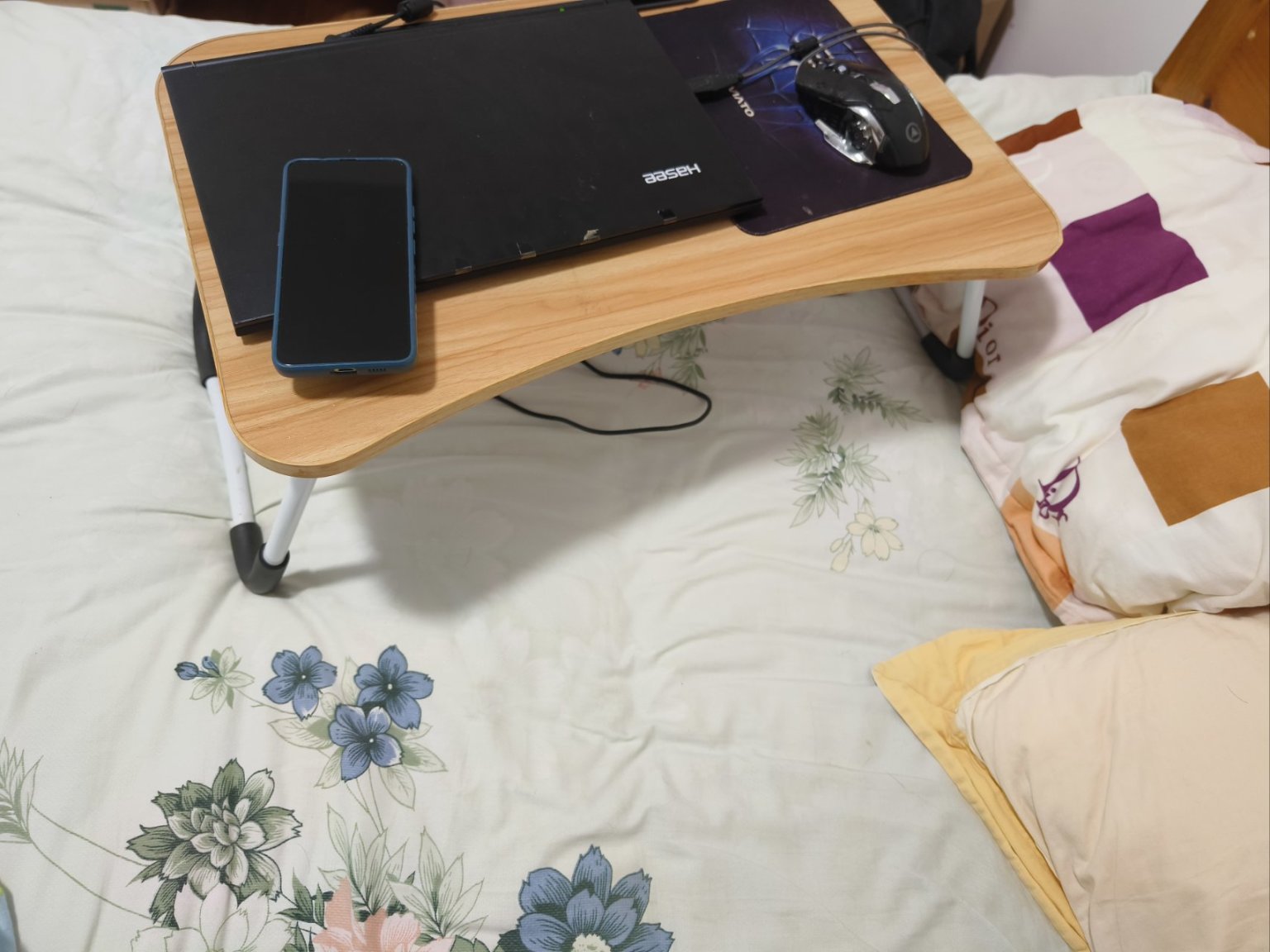 第5个床上办公桌,这个东西咋说呢好用是好用,但是在学校外用的更多,反正椅子哪有床舒服是吧。中间的就行,太大放不下,太小也放不下。