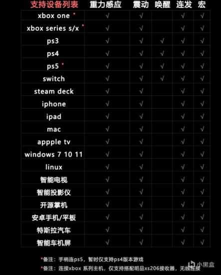 同時,其本身也算是繼承了明品一慣的風格,儘可能多的支持各種平臺,其本身支持的設備類型可以說是非常之多了,除了常規的安卓,蘋果,NS以及PC外,其可以支持XBOX系列以及PS系列,其原生支持PS3和PS4,對於很多還會翻出PS3來回味的老遊戲愛好者來說,這點還是很棒的,至於PS5目前只支持遊玩PS4版本的遊戲,不過相信未來也可以通過OTA的方式支持,附上支持的設備列表以供參考。