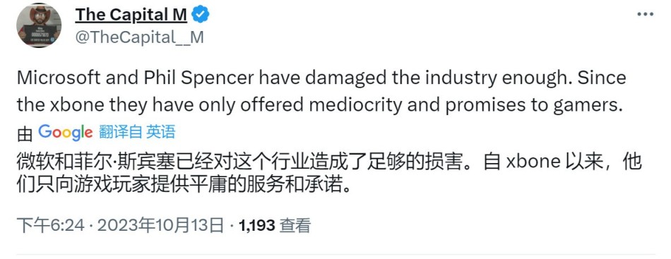 对于Xbox的大局收购问题,有些玩家并不看好。推主TheCapital__M表示:“微软和Spencer已经给游戏行业造成了足够的伤害。自Xbox One以来,他们只向游戏玩家提供平庸的服务和承诺。”