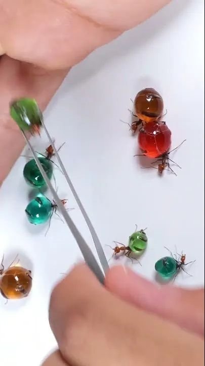 几毫米的身形,腹部大得像一颗葡萄,里面储存的是它们吃进去的花蜜。因为太大,腹部皮肤已经撑开变得很薄,可以清晰看到圆球里的液体颜色,这些颜色和饮食有很大的关系。