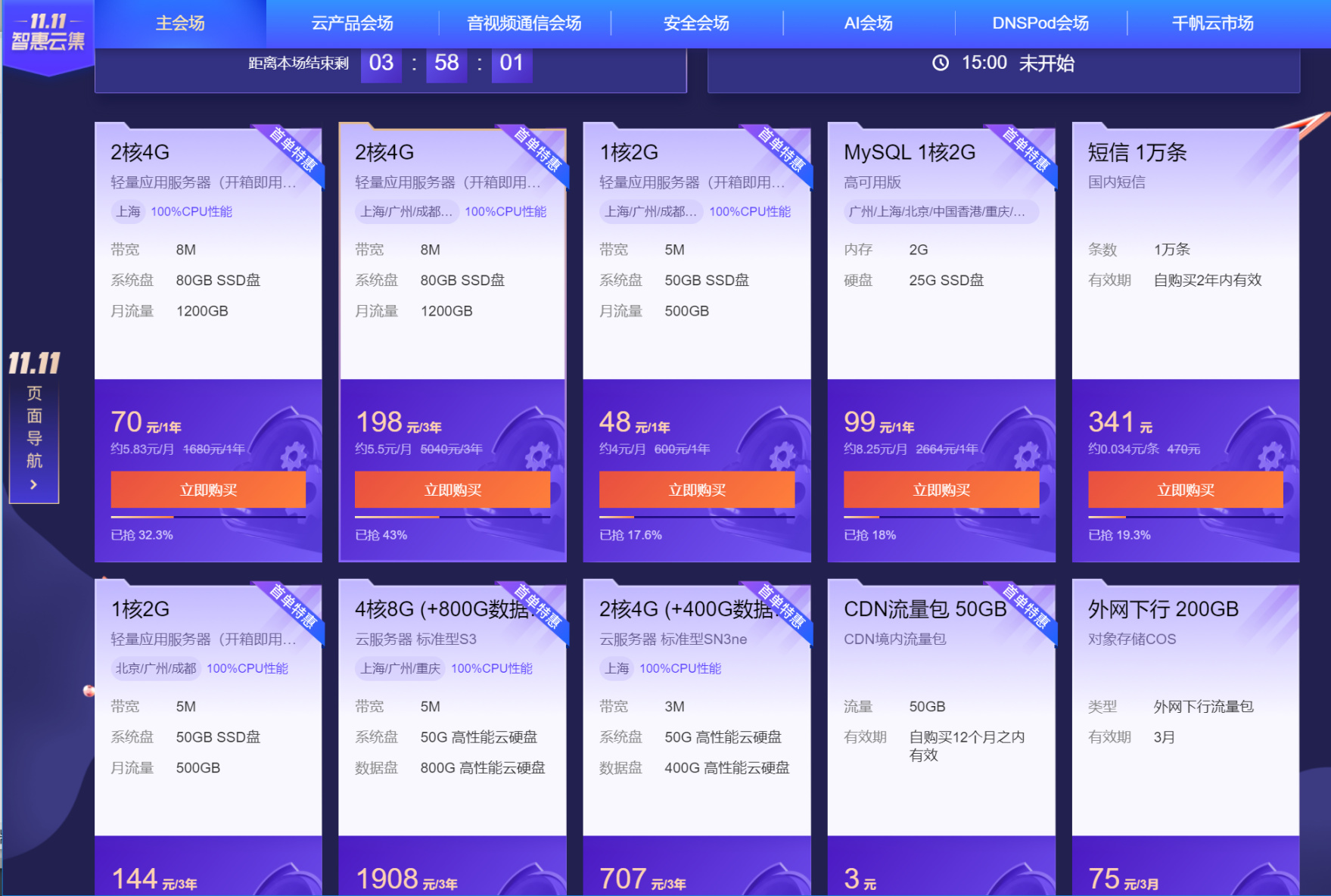 其实买腾讯,买阿里,或者买华为云都行,还有一堆小的云主机服务商也能买,但是我建议买大家耳熟能详的品牌,最建议买腾讯和阿里的,因为现在国内买这样的云主机需要实名认证,而大家的腾讯和阿里系的账号基本都是实名认证过的,不需要额外的认证。