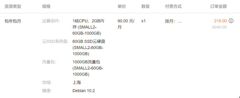我买的三年,1核加2G内存,6Mbps的宽带,以及1000G流量包,三年只要219。后续续费肯定是飞天一般的贵,但是三年后再看吧。