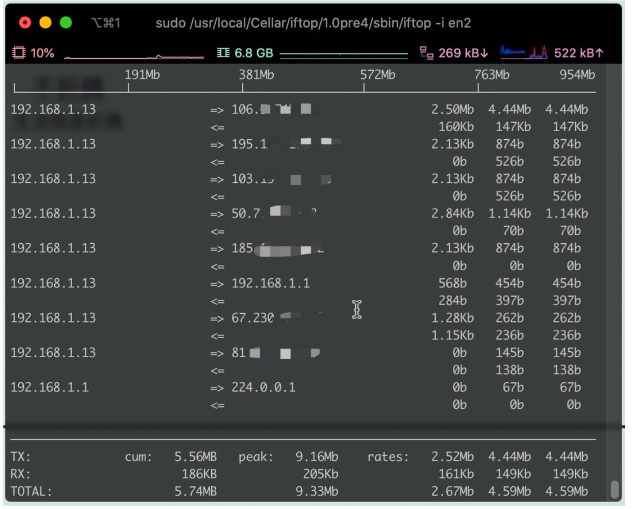 其实zerotier是支持p2p打洞流量传输的,并不是自建了moon所有流量就经过moon服务器中转的,如图这是我从我电信宽带的设备远程连接到移动宽带内网的设备,在移动宽带内网的设备的带宽统计截图: