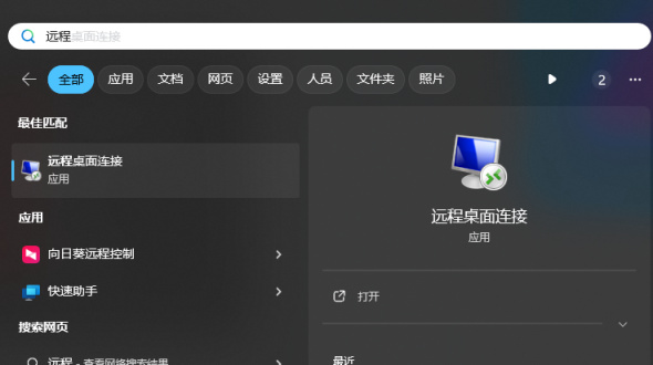 打开开始管理页面,然后搜索远程,就会跳出来远程桌面连接的选项。