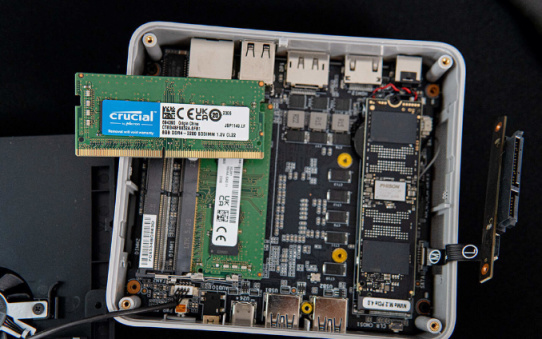 支持SATA接口,支持两条DDR4笔记本内存条,支持一条PCIe4.0协议的固态盘,现在给的硬盘是500G的硬盘,跑个服务是完全够了。