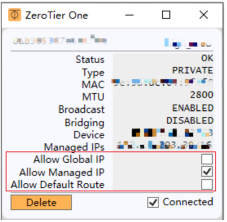 再把下图红框中的几个对勾打上,重启服务"ZeroTier One"和客户端。就会发现现在可以连接上moon了。