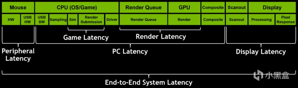 但实际上,只有高帧率的游戏画面是远远不够的。举个栗子。如果我们拥有一台可以每秒渲染1000FPS的PC,但是接入了一个长长长长长的流程,玩家的关键击杀帧在第999帧,也就是在近1秒后才会到达显示器的游戏画面中,这时候的有效击中效率无疑变得十分低下。