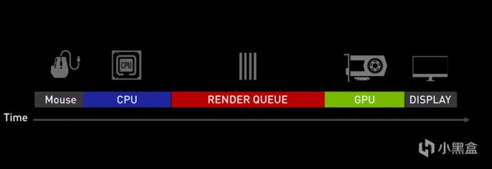 让游戏操作关键帧更快的到达最终画面,自然就是降低CPU、渲染管线、GPU整个系统延迟的过程。而每一帧游戏画面,都会先由CPU进行处理,然后放到渲染管线中排队交给GPU,如果CPU的速度快于GPU,就意味着CPU处理后的渲染管线会增长,排列在其中的操作关键帧被GPU处理的时间就会被随之延长。