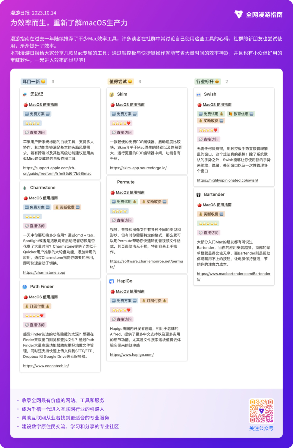 漫游指南在过去一年陆续推荐了不少Mac工具,许多读者经常讨论自己使用这些工具的心得,新朋友也尝试使用,渐渐提升了效率。