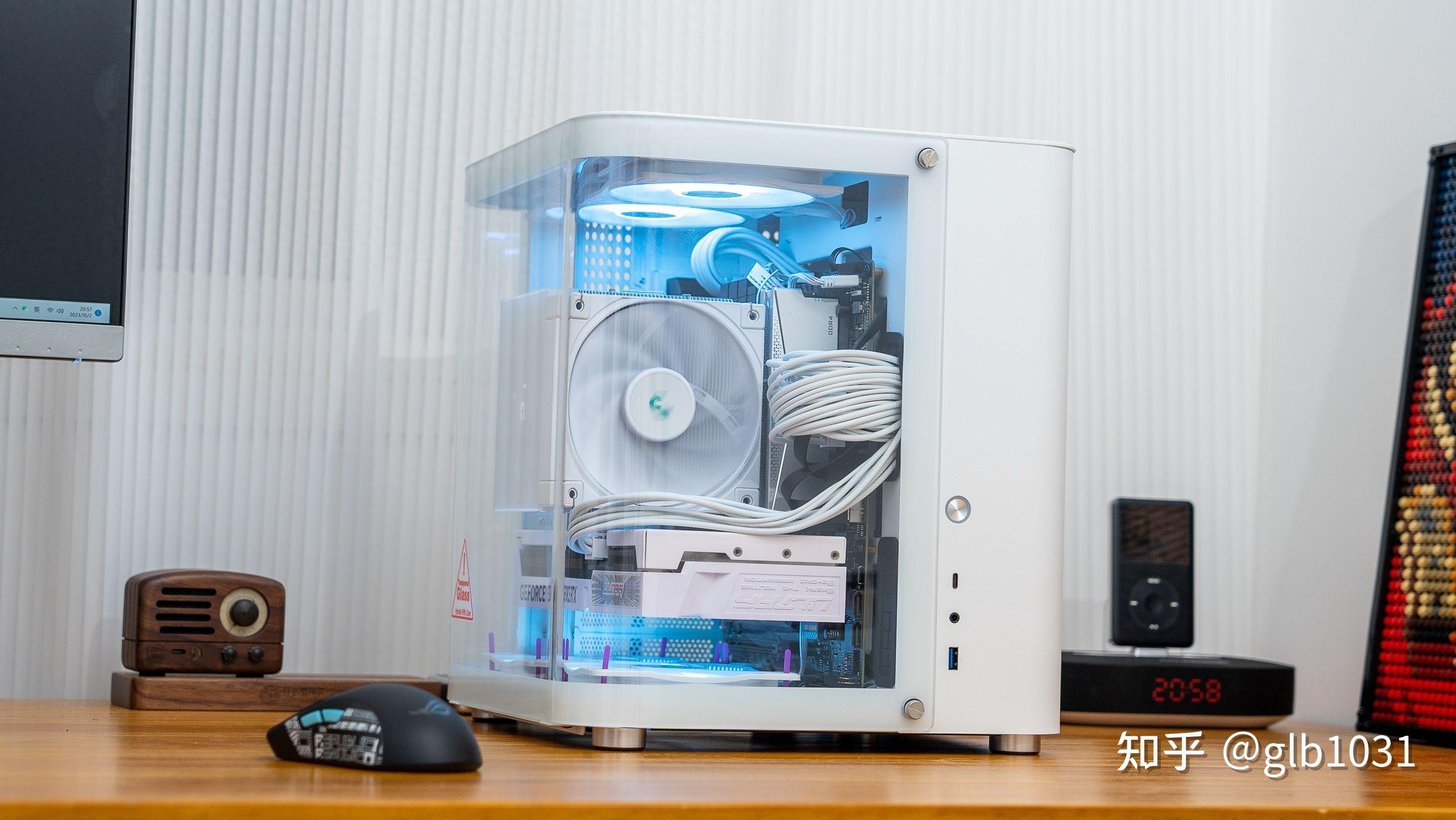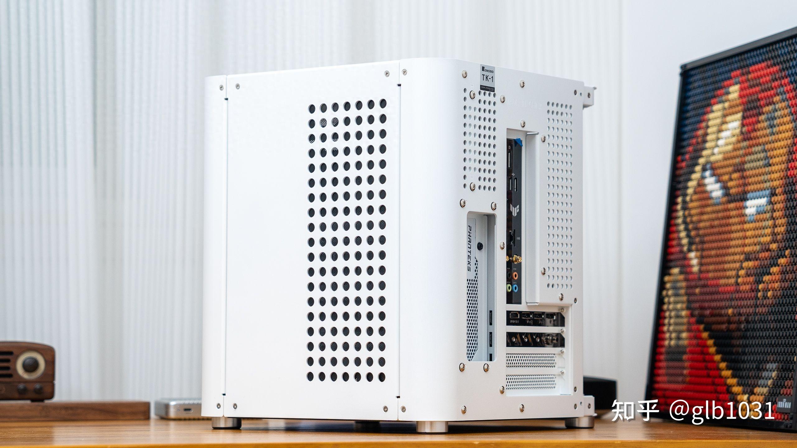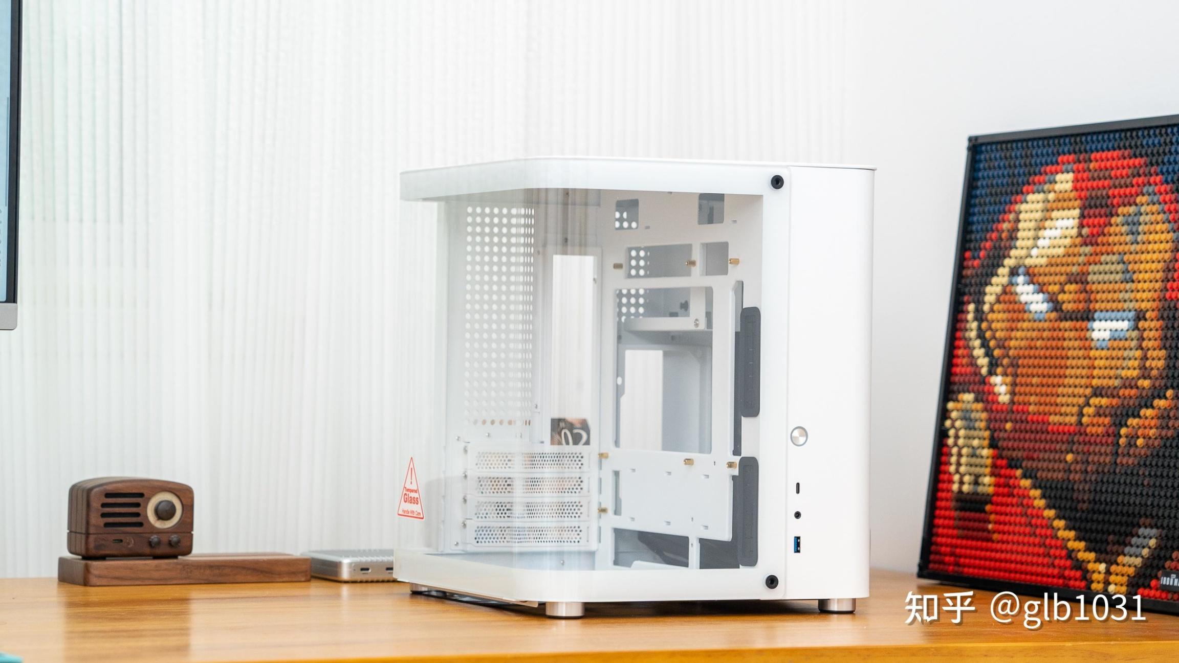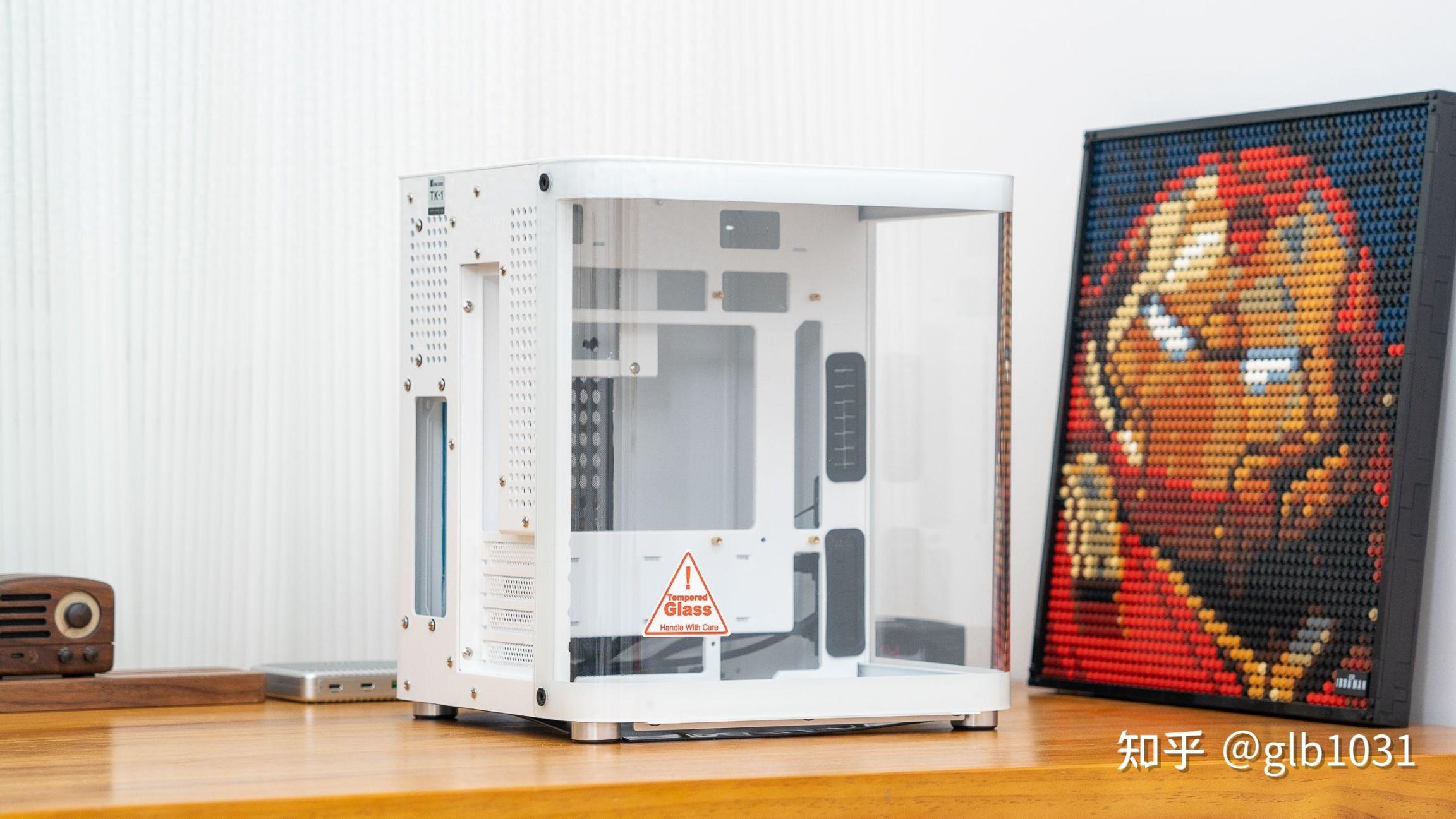 機箱方面是朋友自己選的,給了他幾個目前主流的選擇。像是沒有A柱的海景房、傳統海景房還有這次用的「魚缸式」的喬思伯TK-1 星艦艙白色海景房,朋友一眼就相中這款了。畢竟U型的雙曲面玻璃設計的機箱還是非常少見的,前後雙倉設計,也讓機箱整體尺寸僅一步縮小了不少。