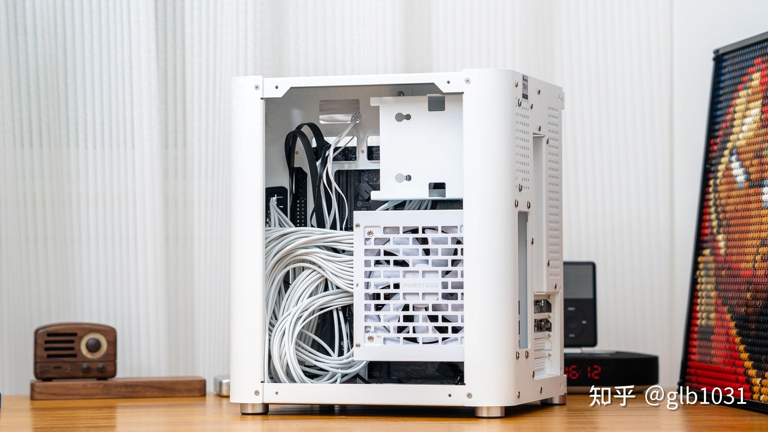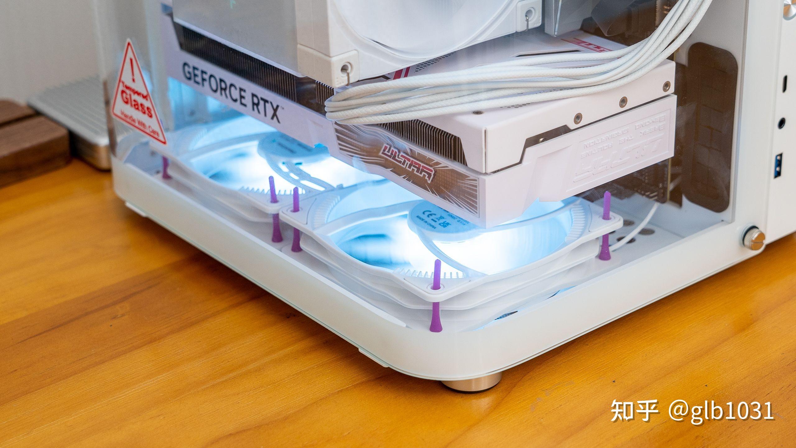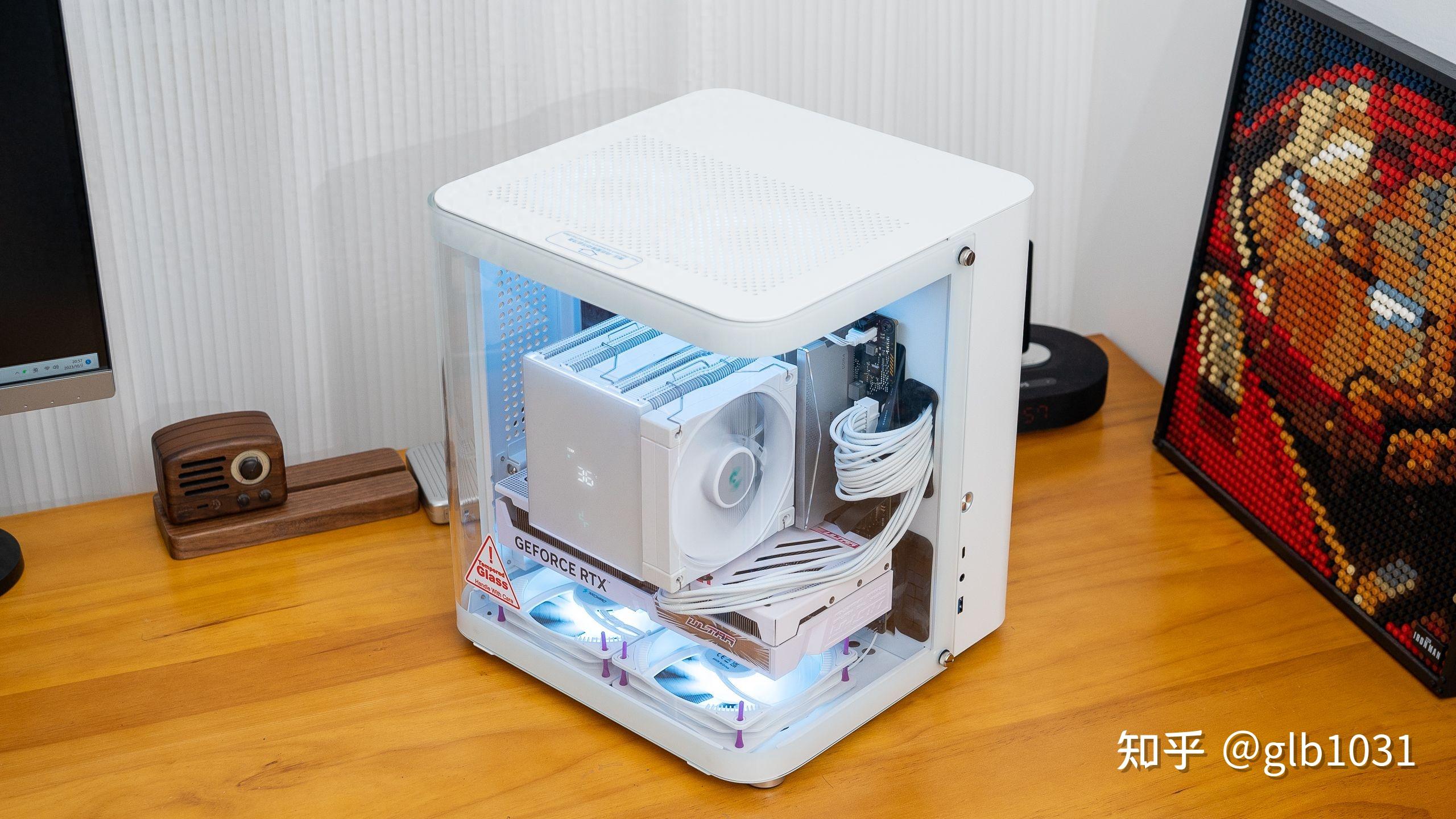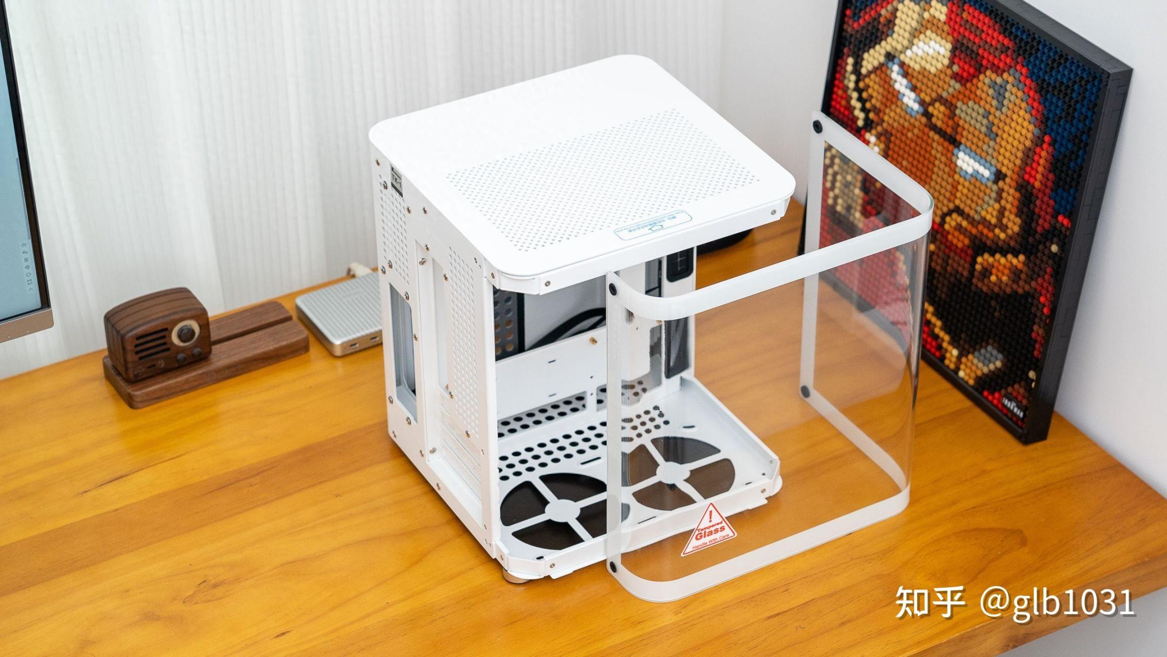 機箱方面是朋友自己選的,給了他幾個目前主流的選擇。像是沒有A柱的海景房、傳統海景房還有這次用的「魚缸式」的喬思伯TK-1 星艦艙白色海景房,朋友一眼就相中這款了。畢竟U型的雙曲面玻璃設計的機箱還是非常少見的,前後雙倉設計,也讓機箱整體尺寸僅一步縮小了不少。
