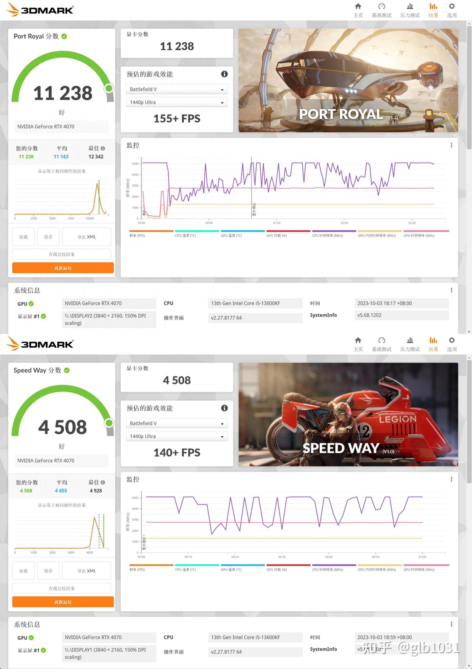 3DMark Port Royal 和 Speed Way 測試成績如圖: