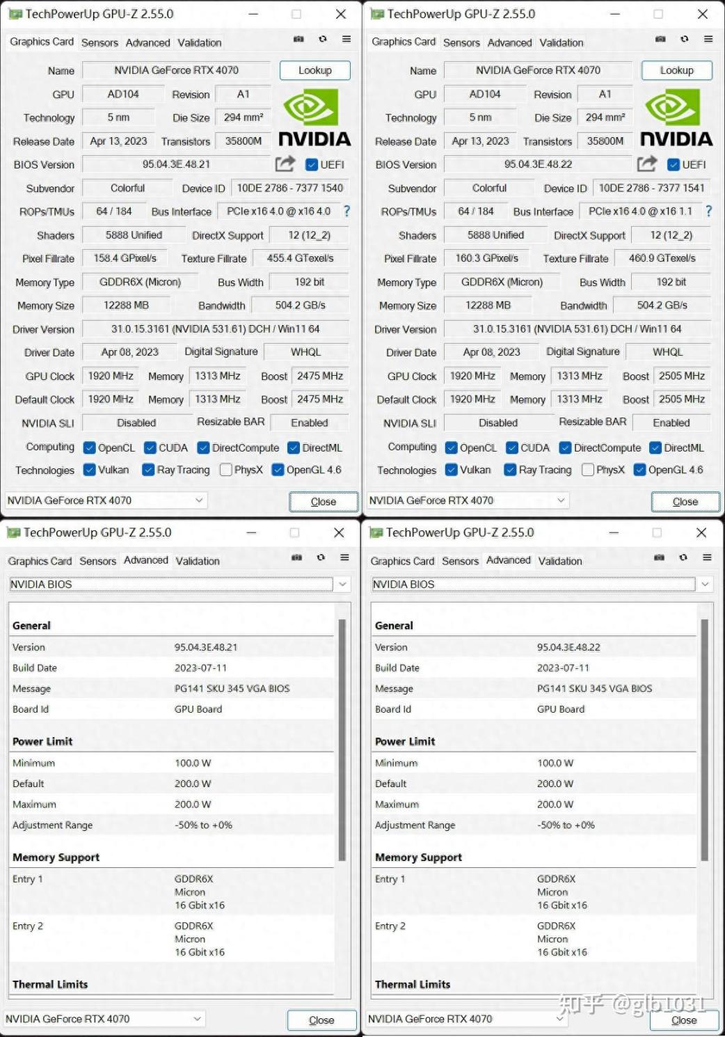 BIOS 版本1:GPU Clock 1920 MHz、 Memory 1313 MHz 、Boost 2475 MHz。TDP 200W;
