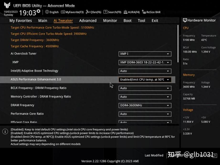 基礎性能測試方面在測試時,僅開啓XMP 以及在MCE 設置中選擇了設置了Remove All limits (90℃)選項。