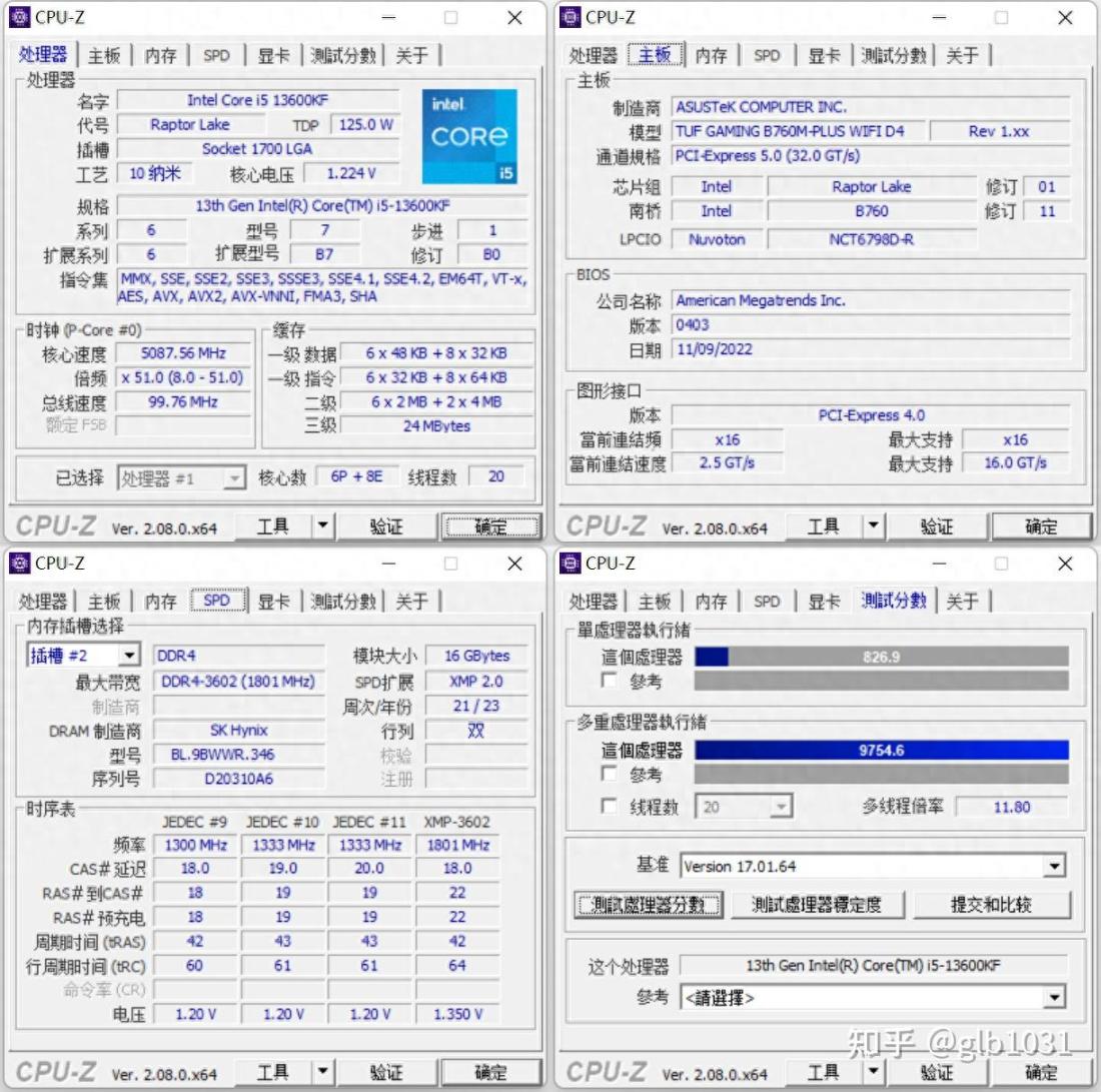 測試可以看到CPU-Z 成績,13600KF 多核成績9754.6,單核 825.9 。