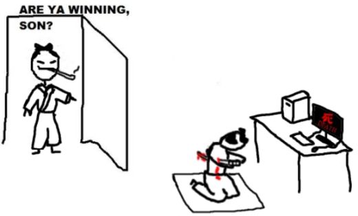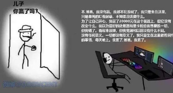 还有人用火柴人的画风将类似的场景简化,从而形成了一个经久不衰的互联网名梗:Are you winning son(你赢了吗?儿子)。