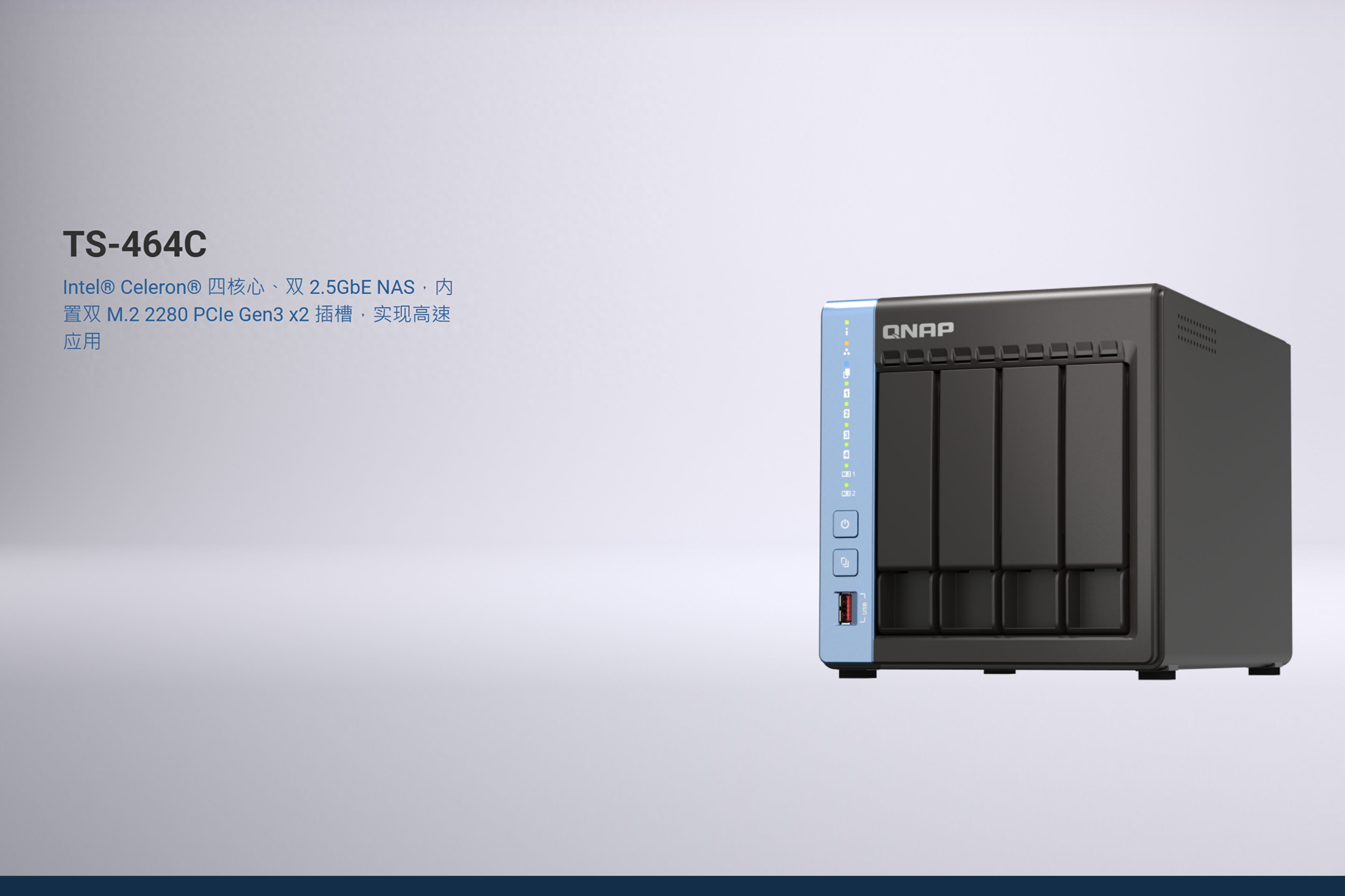 ● 第一是预计售价2999元的威联通TS-464C2,升级点只有外观设计、支持SO-DIMM内存拓展和硬盘笼上的独立锁孔。