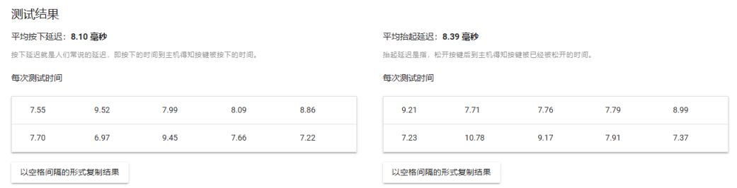 2.4G和有线模式下的延迟都控制的不错,但蓝牙模式的延迟就有点太离谱了,我重复测了几次都是这个结果。建议游戏玩家不要用蓝牙模式。