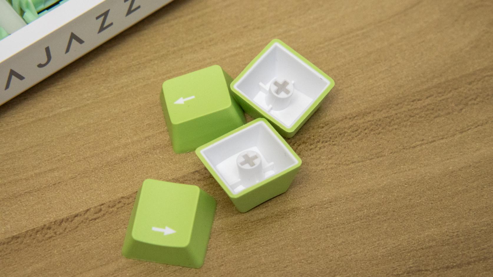 键帽方面,三色PBT的OEM高度键帽,无毛刺无水口无缺陷,在这个价位表现很好。