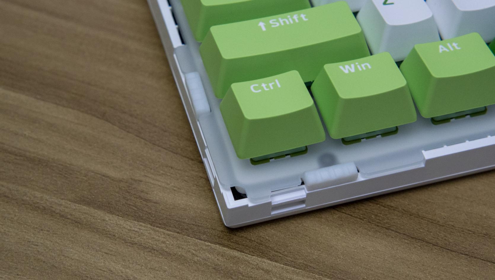 因为是内胆可形变的Gas结构,所以定位板和上盖之间有缝隙。但这就导致了只要开始充电,那键盘指示灯的灯光就会从上盖的缝隙出漏出来。这是整把键盘在使用时的唯一的外观缺点。不过在199的价格面前,我可以忍。