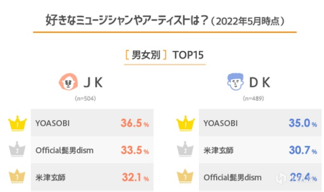作为2022年日本高中生最喜欢的歌手,索尼音乐娱乐冉冉升起的新星(摇钱树),YOASOBI的处境可没有我们想的那么好受。2020年——2022年,YOASOBI总共创作了30首单曲(包括英文翻唱版),而位于日本高中生最喜欢的歌手第二名、第三名的米津玄师以及Official胡子男dism在同样的时间前者创作了6首、后者则创作了12首,这样对比看来YOASOBI简直就像累死的牛在名为SONY音乐的地上耕得死去活来。
