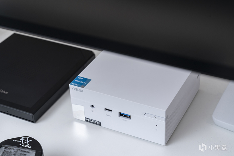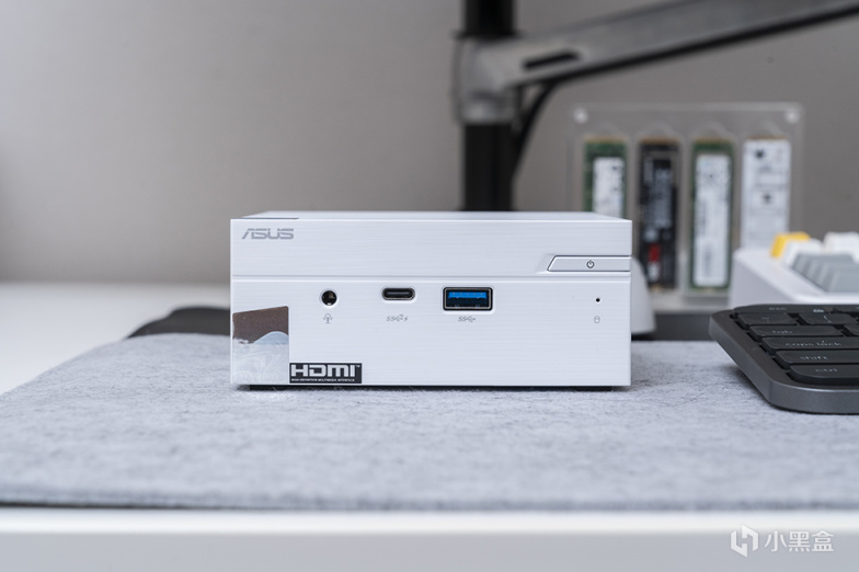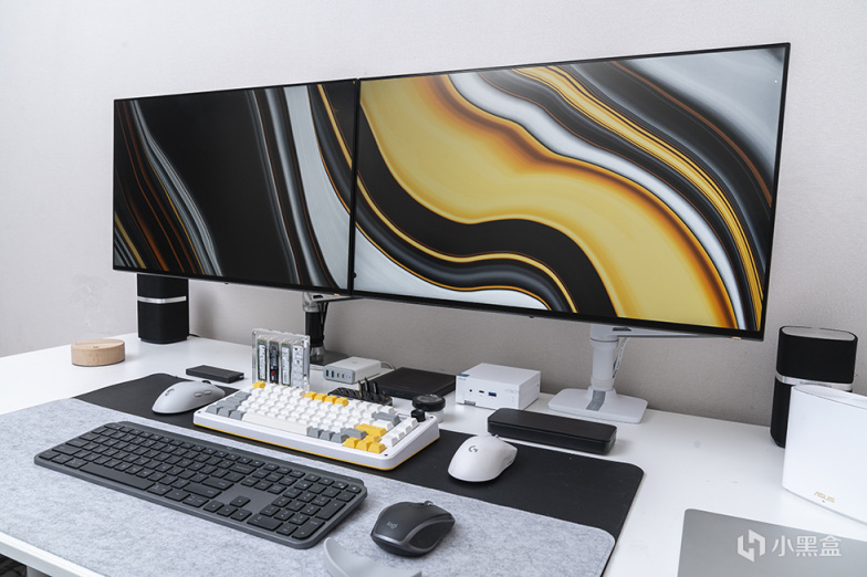 我的桌面是1.6m,原本是一台32寸显示器+MBP+ITX的搭配,由于近期上了27寸双屏,桌面上的空间就不够了。MBP依然是日常主力,但是为了工作上的一些需求,WIN系统是不可缺少的,所以把ITX主机换成了华硕的MINI主机PN41,采用INTEL 奔腾四核 N6005+4G内存+256g SSD的配置,日常工作文档处理和浏览信息足够。精致小巧的机身一点都不占地方,随便往显示器下面一放即可。而且通过VESA支架可安装于显示器背面,重量只有700克,没有任何负担。