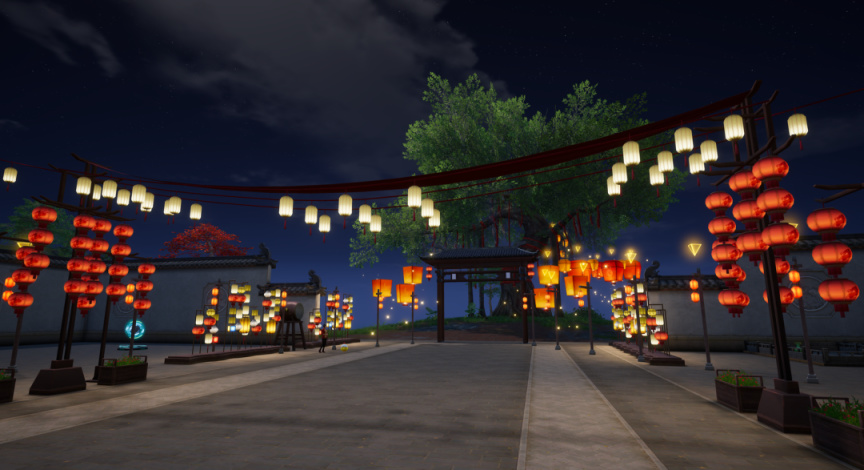 也有不那麼常見的數字建築、場景復刻。這不是說《和平精英》在遊戲裏做個新場景就完事了——他們還需要把場景特色和遊戲性結合起來,讓玩家能夠沉浸進去。今年9月,他們與杭州清河坊歷史文化特色街區合作打造“清河坊祈福燈會”時,除了在遊戲內增設體現宋韻古風的街區,還特地設計了賞花燈、品宋詞、玩投壺等玩法,加深活動給玩家留下的印象。