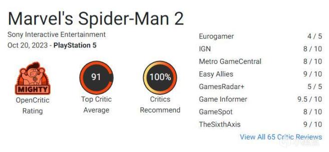 OpenCritic(收录65家媒体评分,OpenCritic 91分)