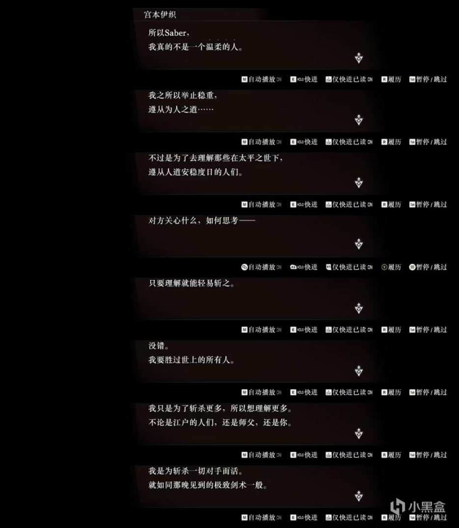 看完这一段,我才彻底理解了整个剧情的战斗和对话在表达什么,夸张点说,这一整个圣杯战争的故事都是在为他的心理作铺垫。宫本伊织并非是简单的“习武之人”,而是“以剑为生之人”。