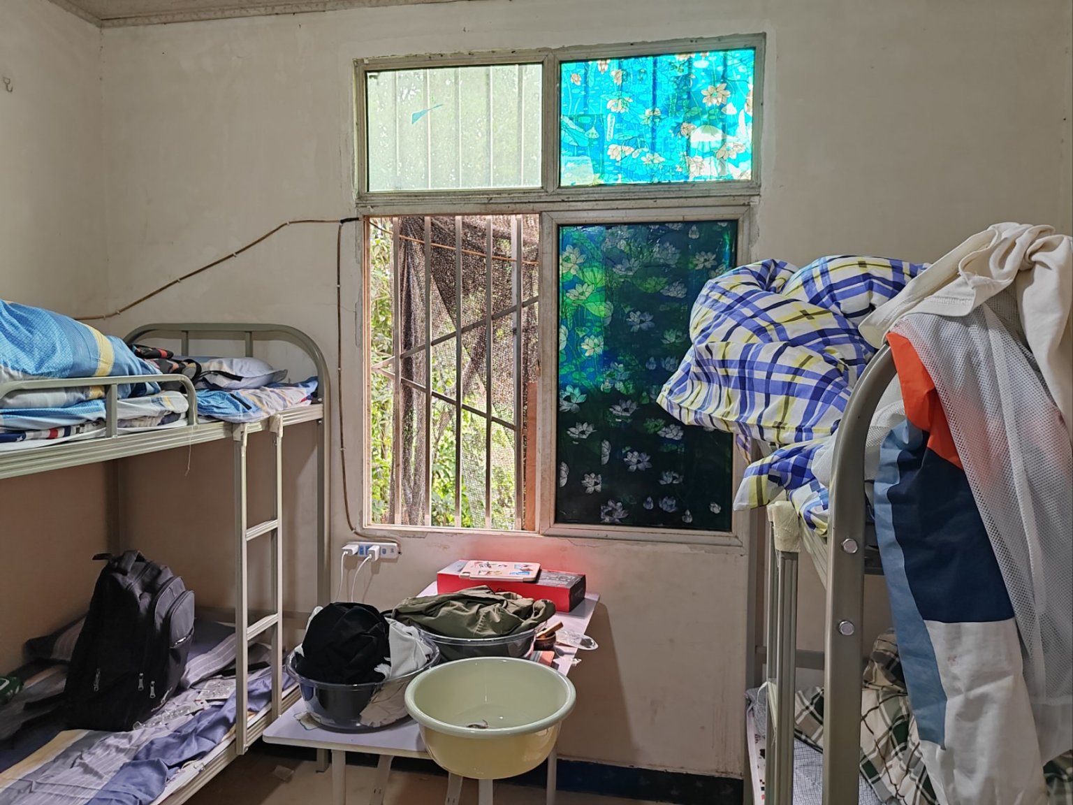 后面在11点多的时候到地儿了,先去的同学们跑出来迎接(因为后面有段路太窄了大巴进不去,得出来搬物资和行李)