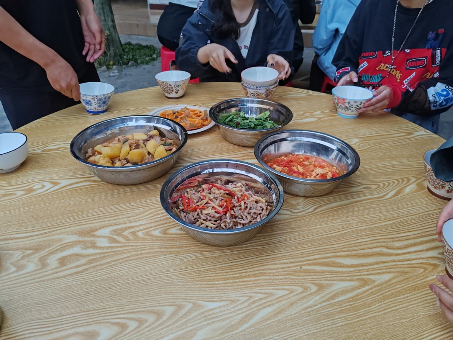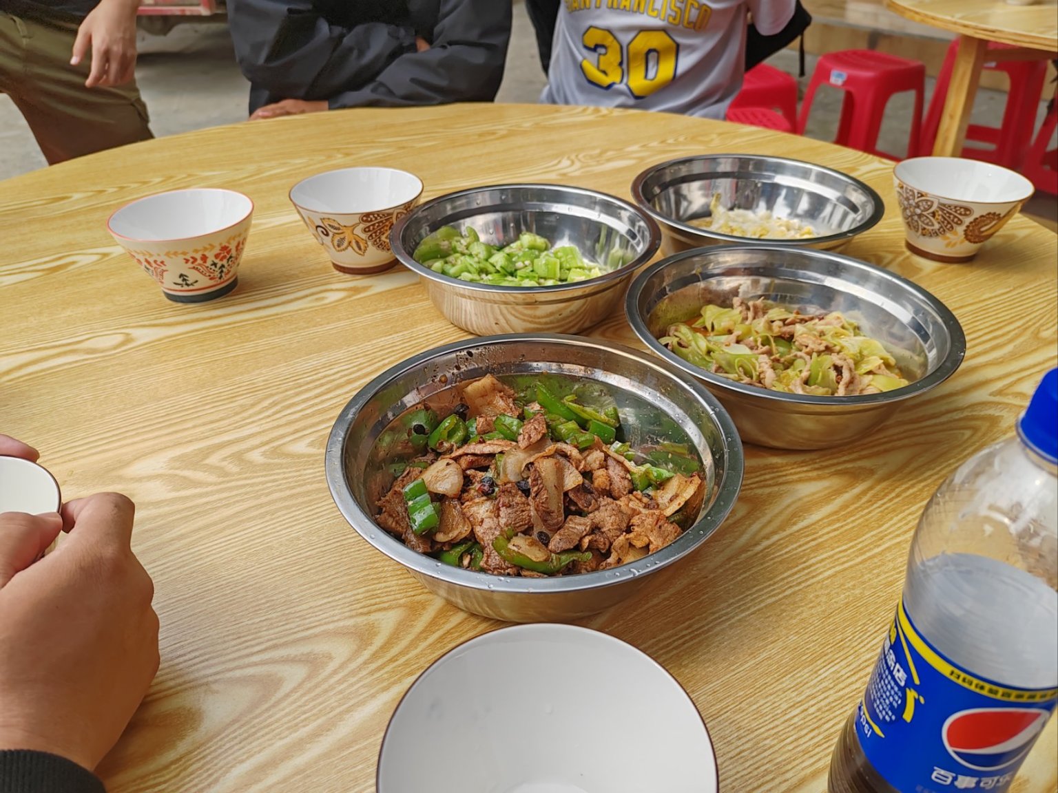 后面到了就开始恰饭,基本上就是10人一桌中午2荤2素1汤,晚上3荤2素1汤,菜味道还行(做饭大叔确实可以)