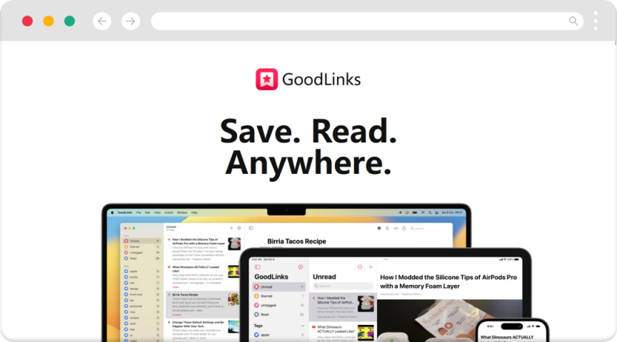 一款蘋果全平臺可用的網頁閱讀器,它可以快速解析保存的文章,供原生的閱讀體驗,用Tag管理你的閱讀文章/書籤。支持URL-Scheme,導出Markdown格式,iCloud Apple全平臺同步。