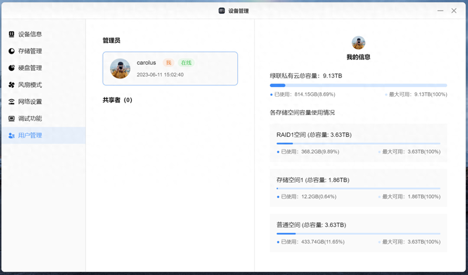 2、我需要數據靈活存儲,就是重要數據需要RAID1陣列冗餘備份, 普通數據不用RAID冗餘,綠聯NAS在多硬盤下支持多個存儲模式組合使用。我2個盤組成RAID1,2個盤組成Basic普通模式,完美解決我的需求。