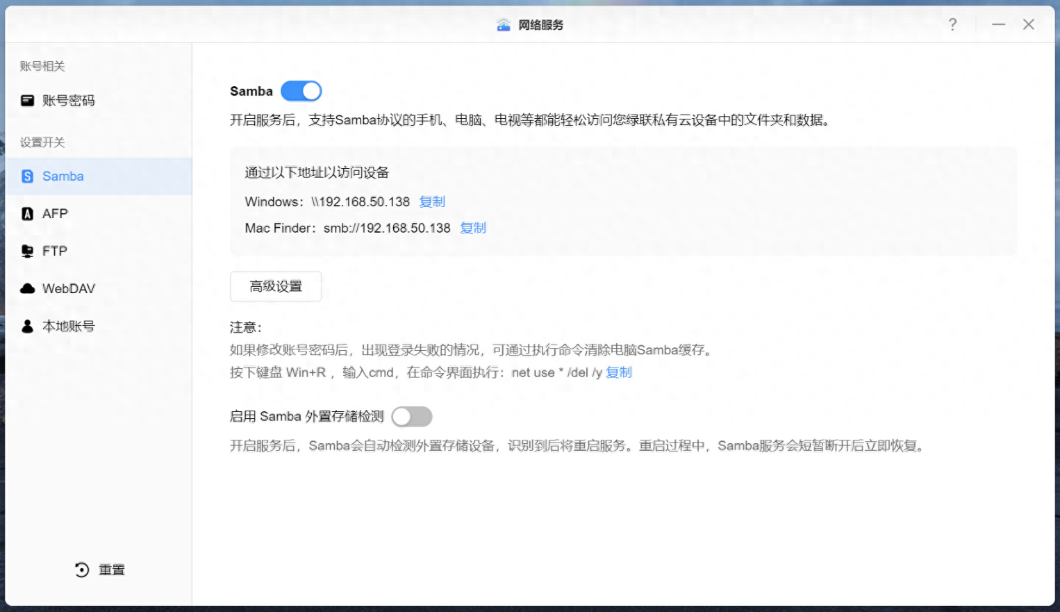 第三點,綠聯DX4600 Pro支持多種數據傳輸協議,如SMB,NFS,FTP,HTTP,DLNA,WebDav等等,無論是在家裏局域網,還是在外網訪問都十分方便。建議小白用戶一定要嘗試,相信會打開新世界。