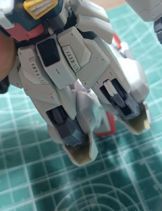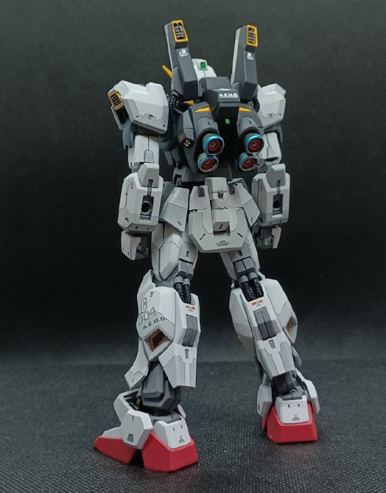 模友对整款模型进行了精致的涂装,增加了丰富的细节刻线,外甲部分还增加了很多细节水贴。背包喷口和头部火神炮部位增加了金属件,整体模型看起来逼格满满,完全没有了HG比例高达模型原版的塑料感,看起来质感十足!