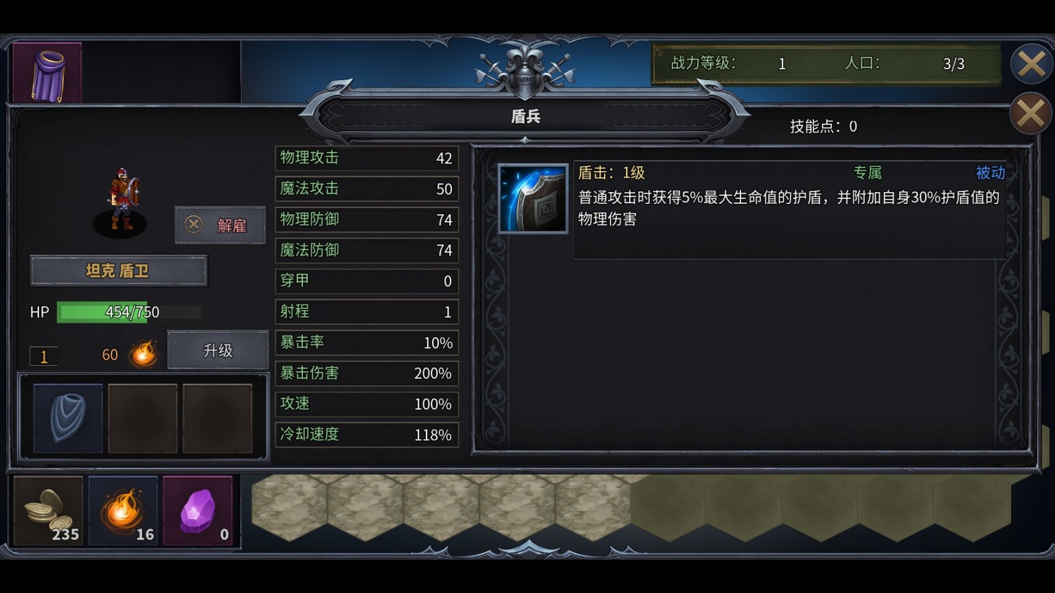玩家需要从头开始打造一支属于自己的队伍,四处征伐小怪来积累经验以提升自身的战力,战斗的时候只需要将英雄放进战场点击开始,双方就会进行死斗。需要注意的是英雄并非会自动升级,而是需要从总经验池中消耗经验来给英雄升级,这样的好处是能够集中资源给关键的英雄分配,并且英雄升级后可以获得技能点用来在职业技能池里学习新技能和升级现有技能,这使得RPG养成的乐趣进一步提升,玩家需要思考队伍需要什么样的职业配置,每一个职业又该从随机给出的技能池中学习什么技能,并且装备的搭配,宝石的附魔,都是足以让玩家乐在其中的点。