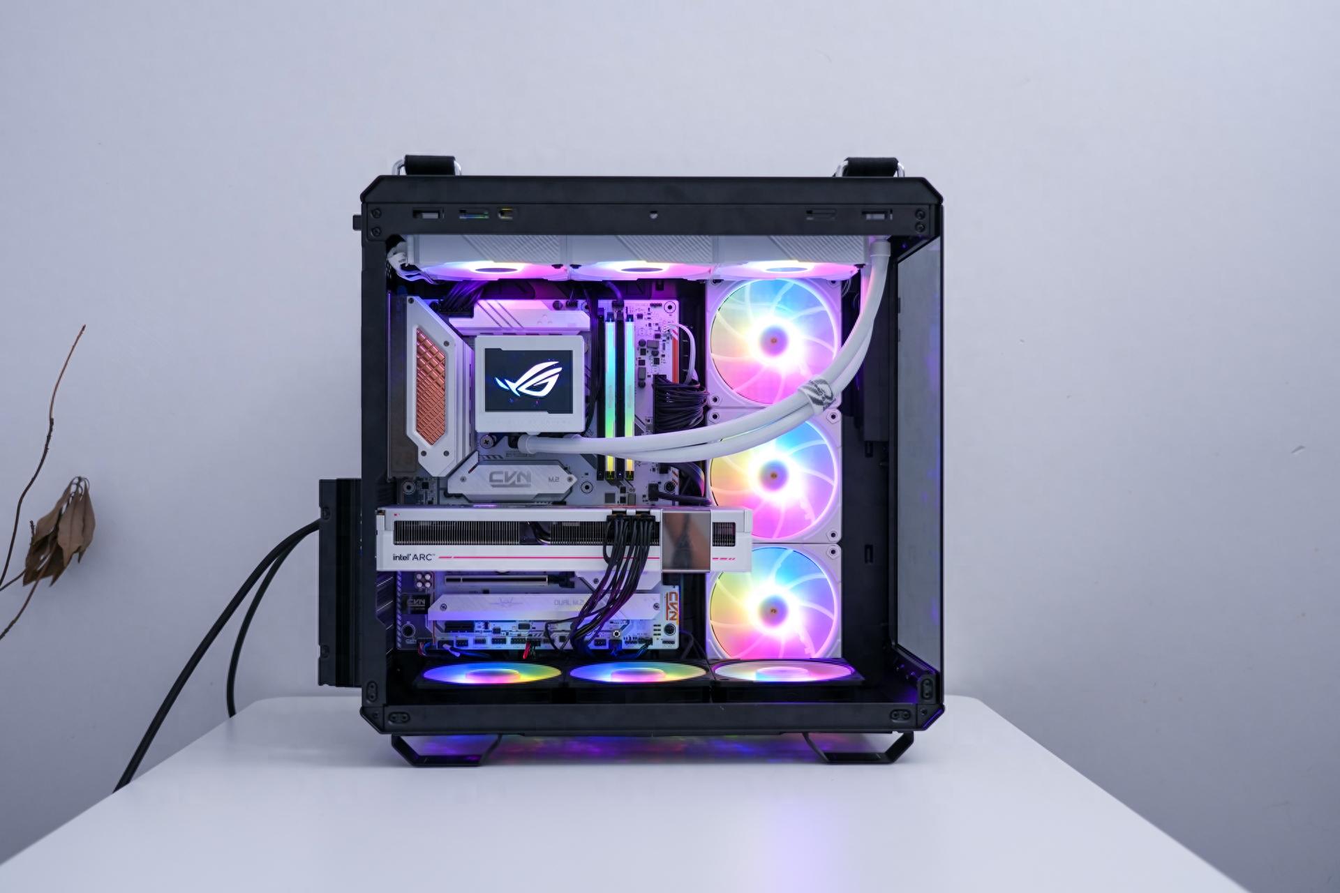 按照国际惯例,先介绍一下测试平台。本次我使用的七彩虹CVN Z790D5 GAMING FROZEN巡洋舰主板,华硕ROG龙神3水冷,爱国者的P7000Z 2TB SSD,2条金百达白刃DDR5,电源和机箱也是华硕一整套,最后是蓝戟A750的显卡。
