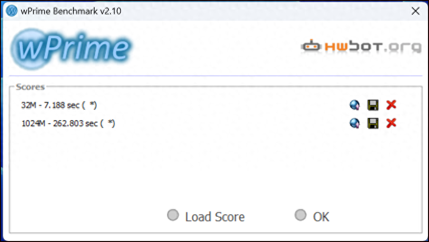 wPrime Benchmark是一款用于测试CPU性能的软件,它可以计算一定数量的整数的平方根,从而评估CPU的运算速度和稳定性。wPrime Benchmark提供了两种测试模式,分别是32M和1024M。32M模式可以测试CPU的基本性能,而1024M模式可以测试CPU的稳定性和多核优化,该测试在Windows 11下会被判断为后台程序全都交给E-Core运行。
