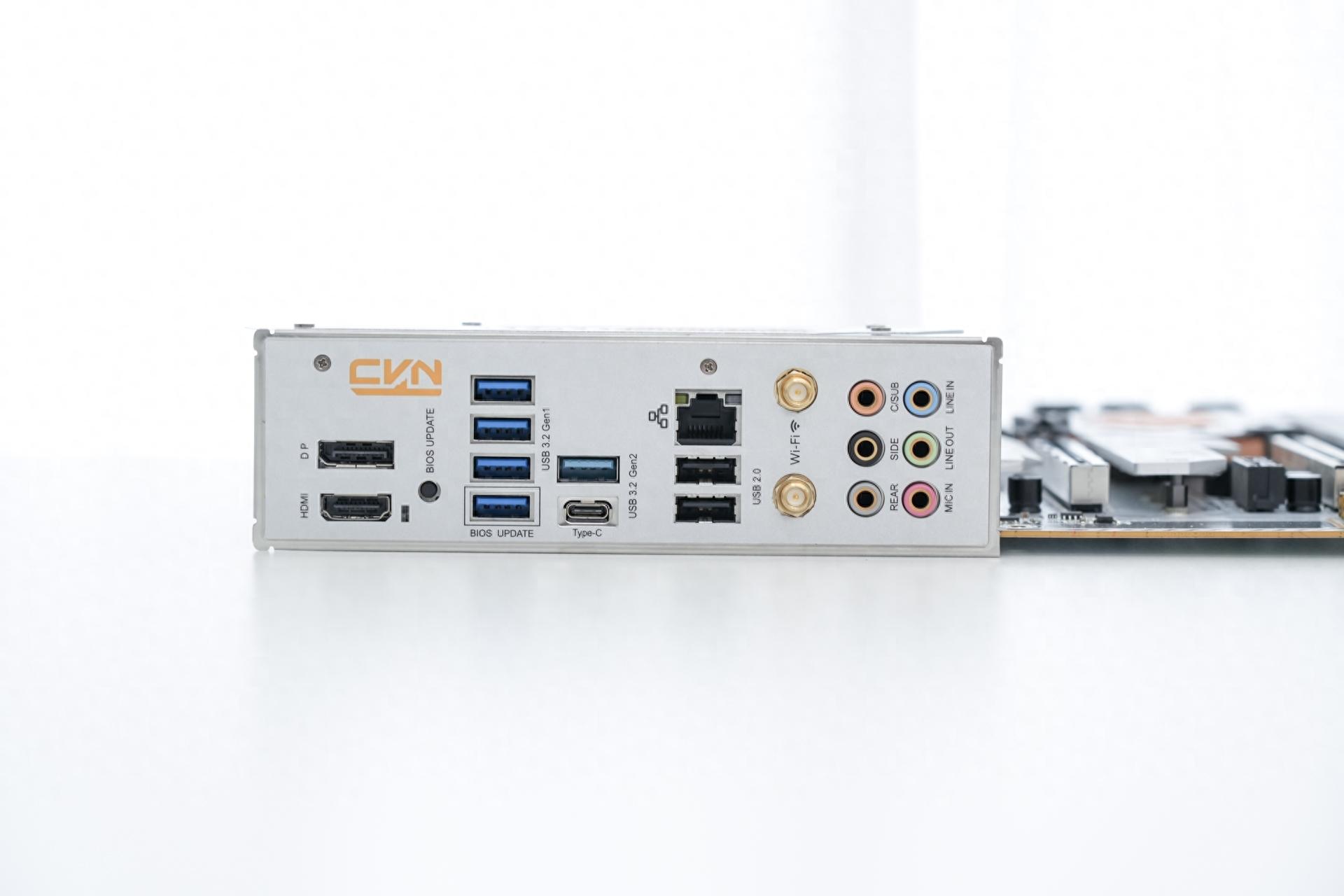 七彩虹CVN Z790D5 GAMING FROZEN巡洋舰的颜值是我选择它的主要缘由,银白色设计加上CVN家族硬朗炫酷的军舰风格,另外在散热装甲上还采用了紫铜材质,在主板的散热装甲上还有主板PCB上能看到点缀有CVN的logo标识,整体风格可谓是极其高调。