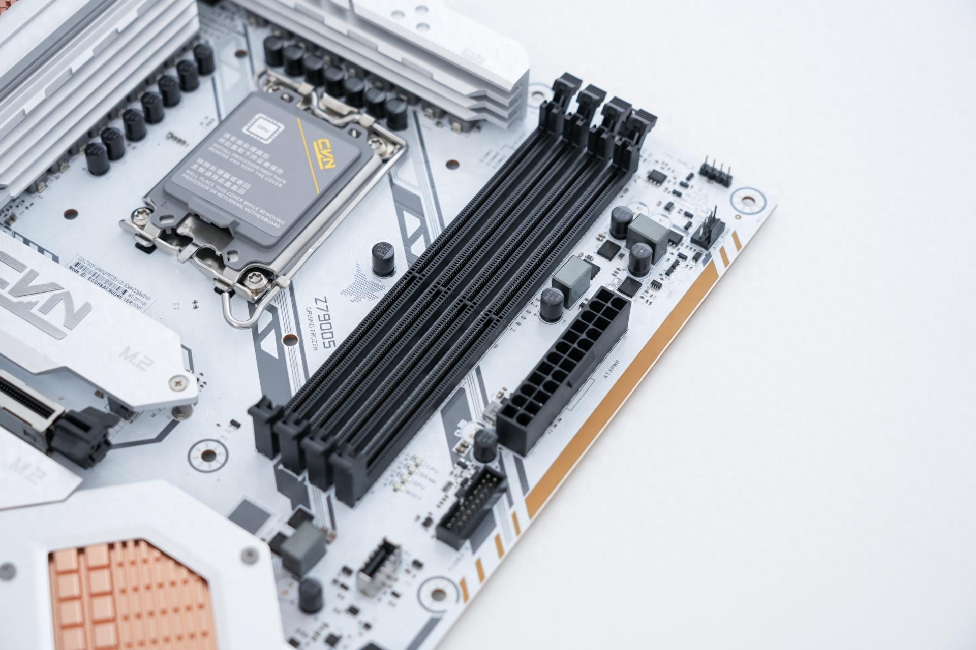七彩虹CVN Z790D5 GAMING FROZEN巡洋舰主板提供了四条DDR5内存插槽设计,支持XMP 3.0,最高支持双通道DDR5-6600 (OC) MHz内存条,并且可以进一步超频,最大支持内存容量128GB。