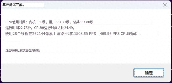 紧接着是R23测试,R23全称为CinebenchR23,它可以帮助用户评估电脑中所有硬件设备的各项参数,同时,用户还可以使用这款CinebenchR23软件对电脑进行跑分,让用户更好的了解自己电脑的性能。因为CINEBENCH的测试引擎基于真实的商业软件,而且还是被业界广泛采用的标准,所以它的多核成绩可以比较好的反映出电脑的专业开发能力。而且因为很多游戏也是用类似的3D软件开发,所以CINEBENCH的单核成绩用来评估游戏能力同样是比较准的。