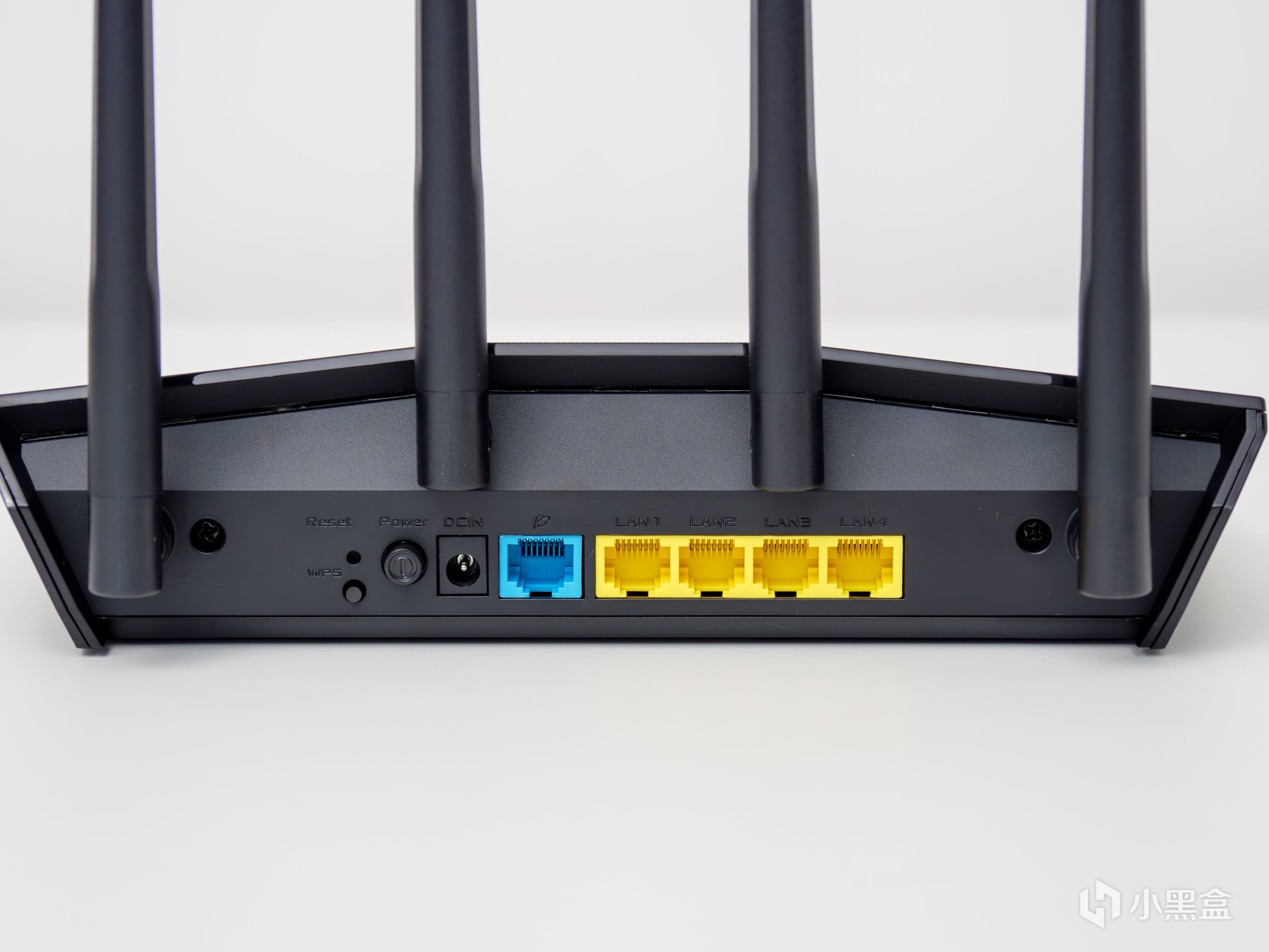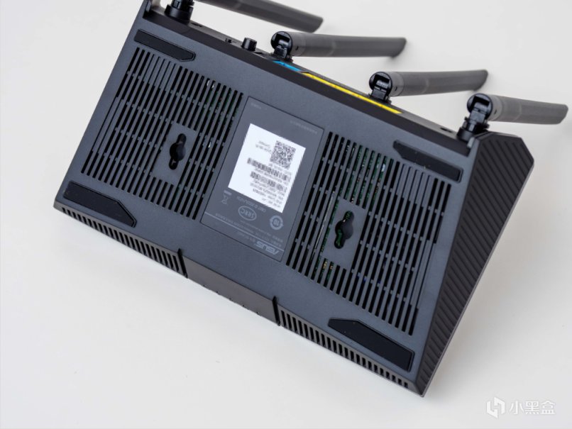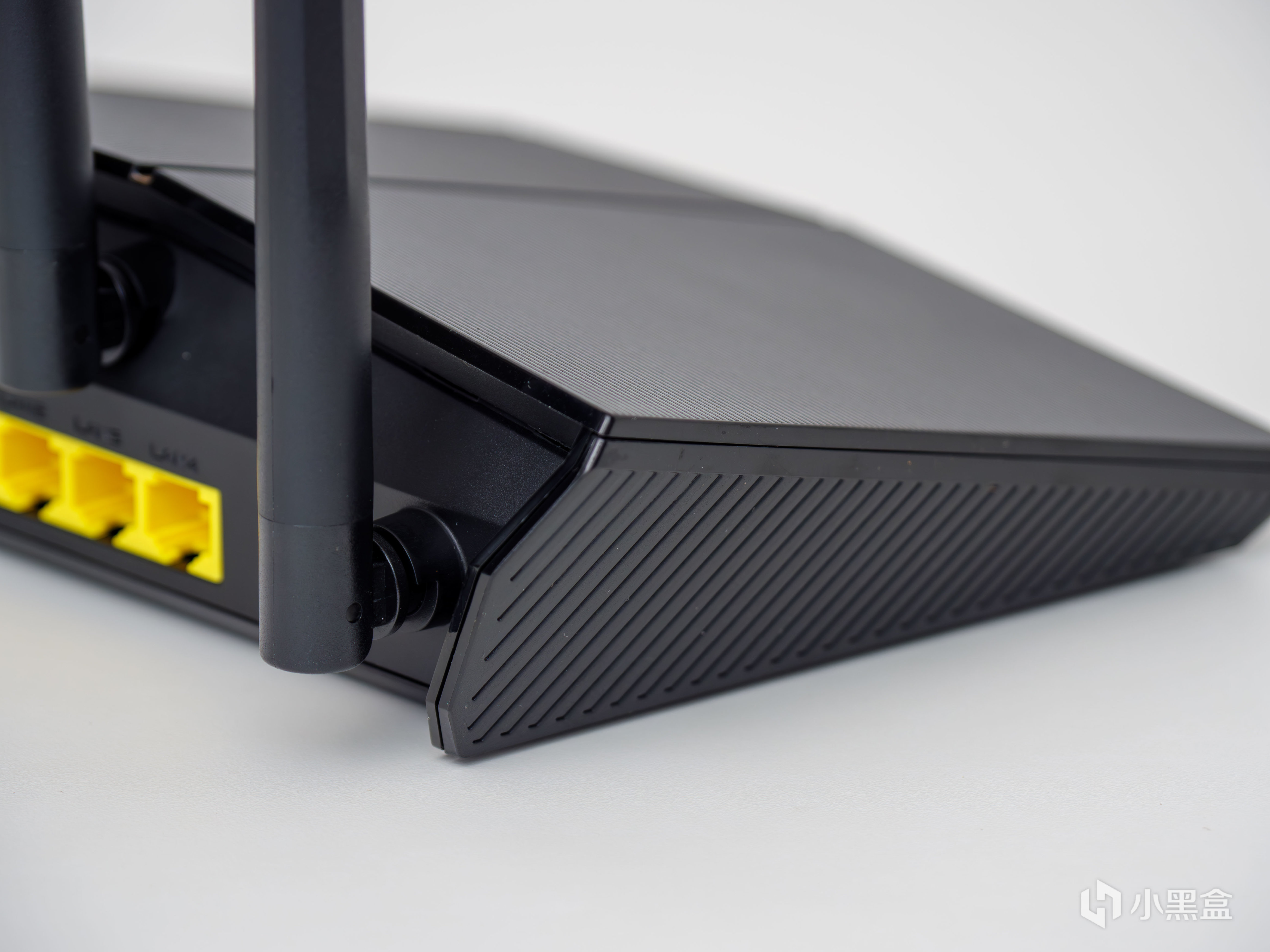 华硕RT-AX57的四条天线为不可拆卸设计,两侧均有密密麻麻的通风口,有助于保证长时间使用时的散热效果。个人一直认为,路由器稳定性的重要性要远远大于性能,扔一边就不用管的路由器才是好路由。