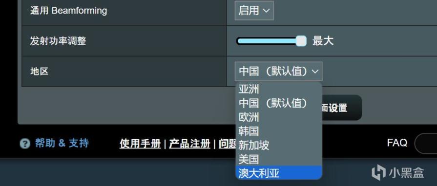 最后最重要的一点是,华硕路由器的独门绝技,就是可以将信号模式改为澳大利亚地区,这样可以突破路由器信号发射功率的国标限制,大大增强信号强度,提高整屋的WiFi覆盖效果。