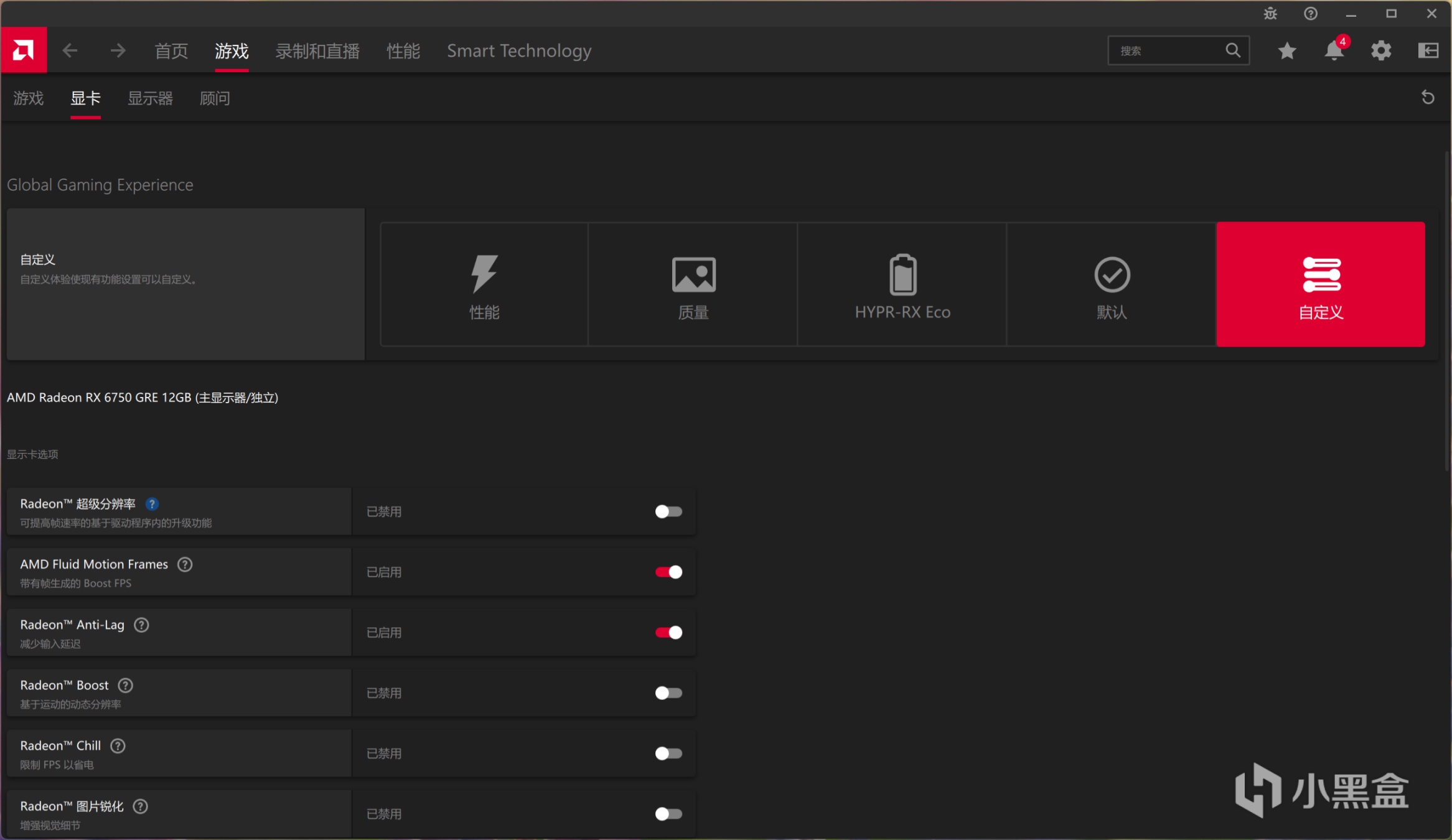 对于RX 6750 GRE系列显卡来说,在FSR 3.0游戏未大量普及支持之时,个人目前更倾向AFMF光流技术,开启方法也很简单,在游戏中Alt+R就可以调出出驱动面板(即时生效),勾选AMD FluidMotionFrames+Radeon Anti-Lag(降低输入延迟)就完成了。