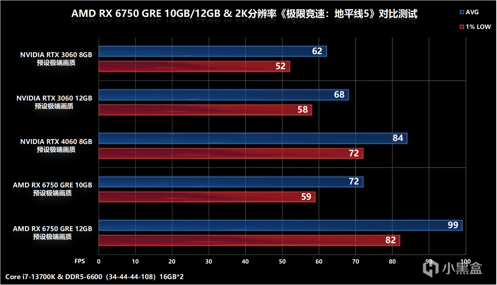 来到游戏测试方面,传统光栅化项目自然还得是两款GRE显卡领先,除了《极限竞速:地平线5》这款游戏以外,只要RX 6750 GRE 10GB就能打赢RTX 4060了,对比同价位的RTX 3060更是平均能领先20%以上的幅度。而相对RTX 4060来说,RX 6750 GRE 12GB最大领先幅度更是达到了37%,六款游戏平均下来领先同价位的RTX 4060达到26% 。五款显卡的价位其实相差不到500元,性能差距却很明显。