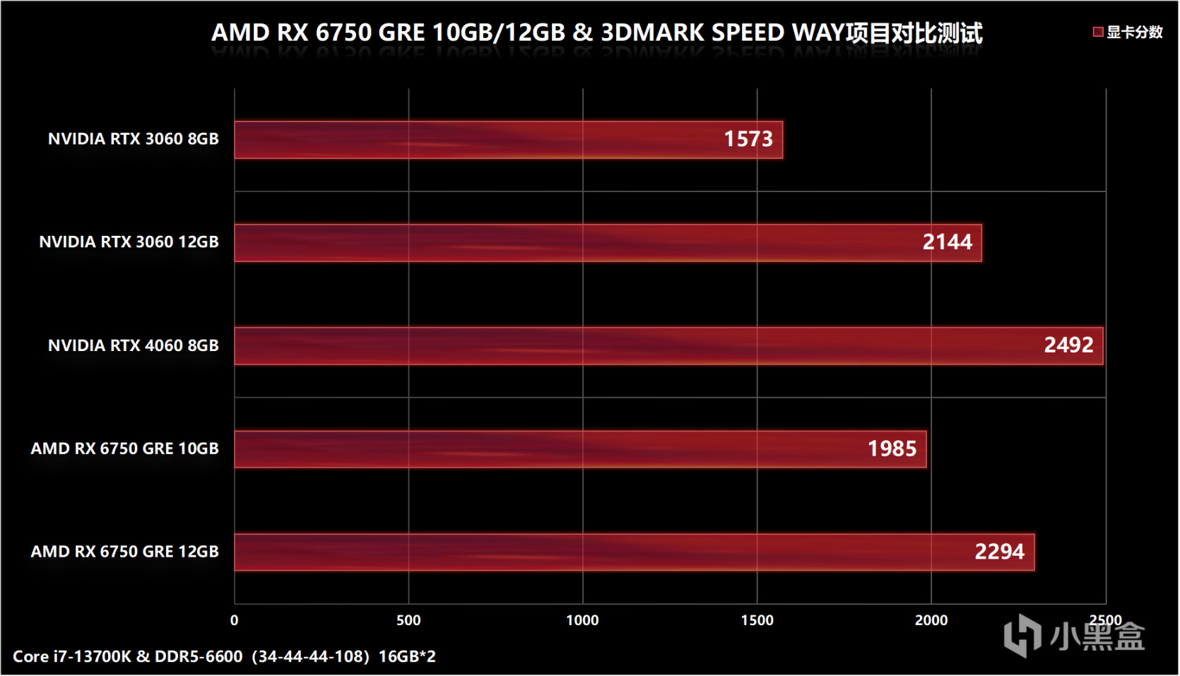 然后是光追方面的相关项目,本来两大显卡阵营光追硬件就是相差了一代,何况这篇测试的A卡还是属于第一代光追的RDNA 2架构,不过RX 6750 GRE 12GB得益于更强的规格错位打击RTX 4060,在纯光追的项目中可以扳回一分,在SPEED WAY混合项目中也紧追着RTX 4060。同样,RX 6750 GRE 10GB和RTX 3060 12GB也是半斤八两的状态。