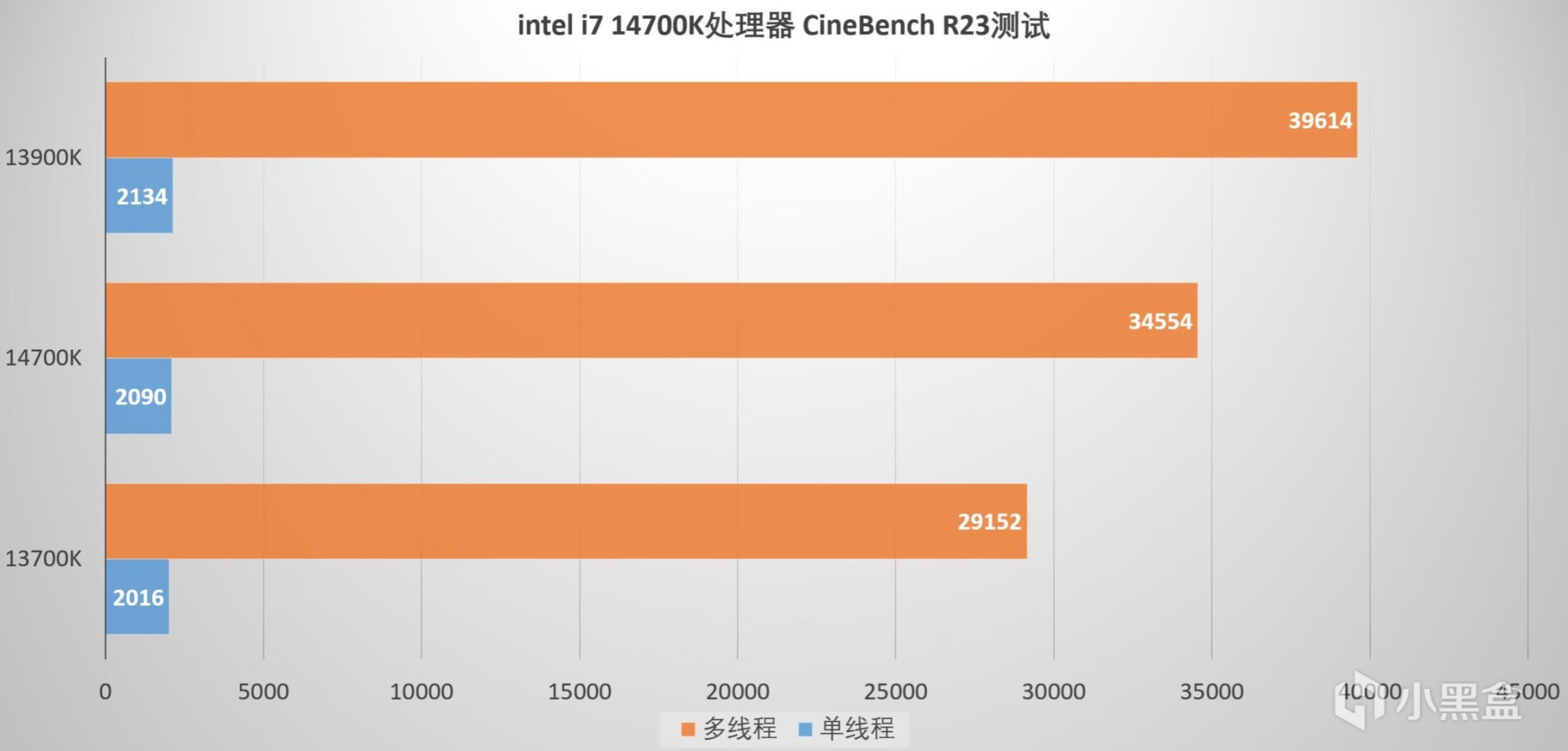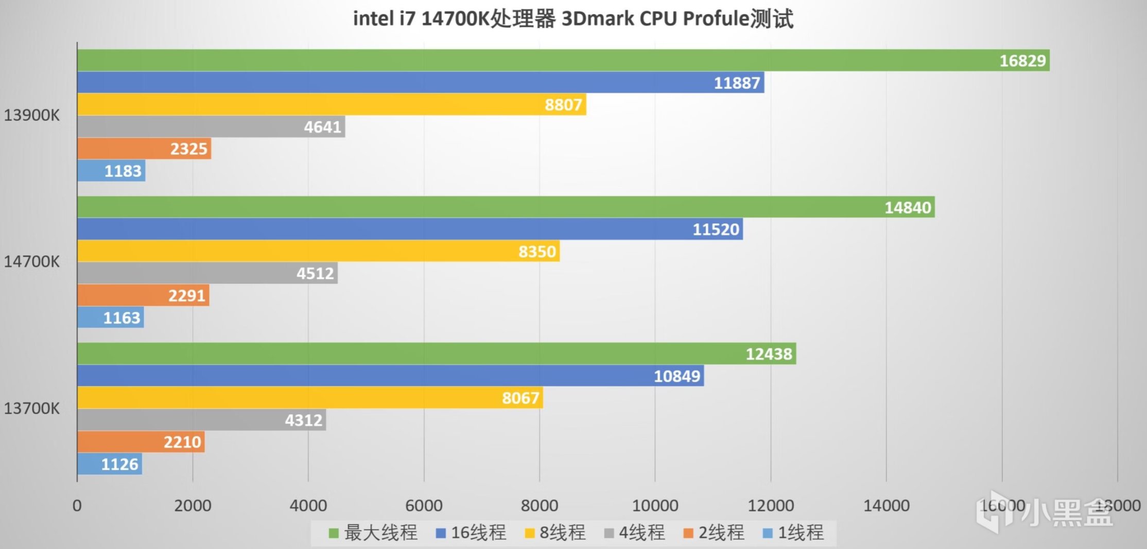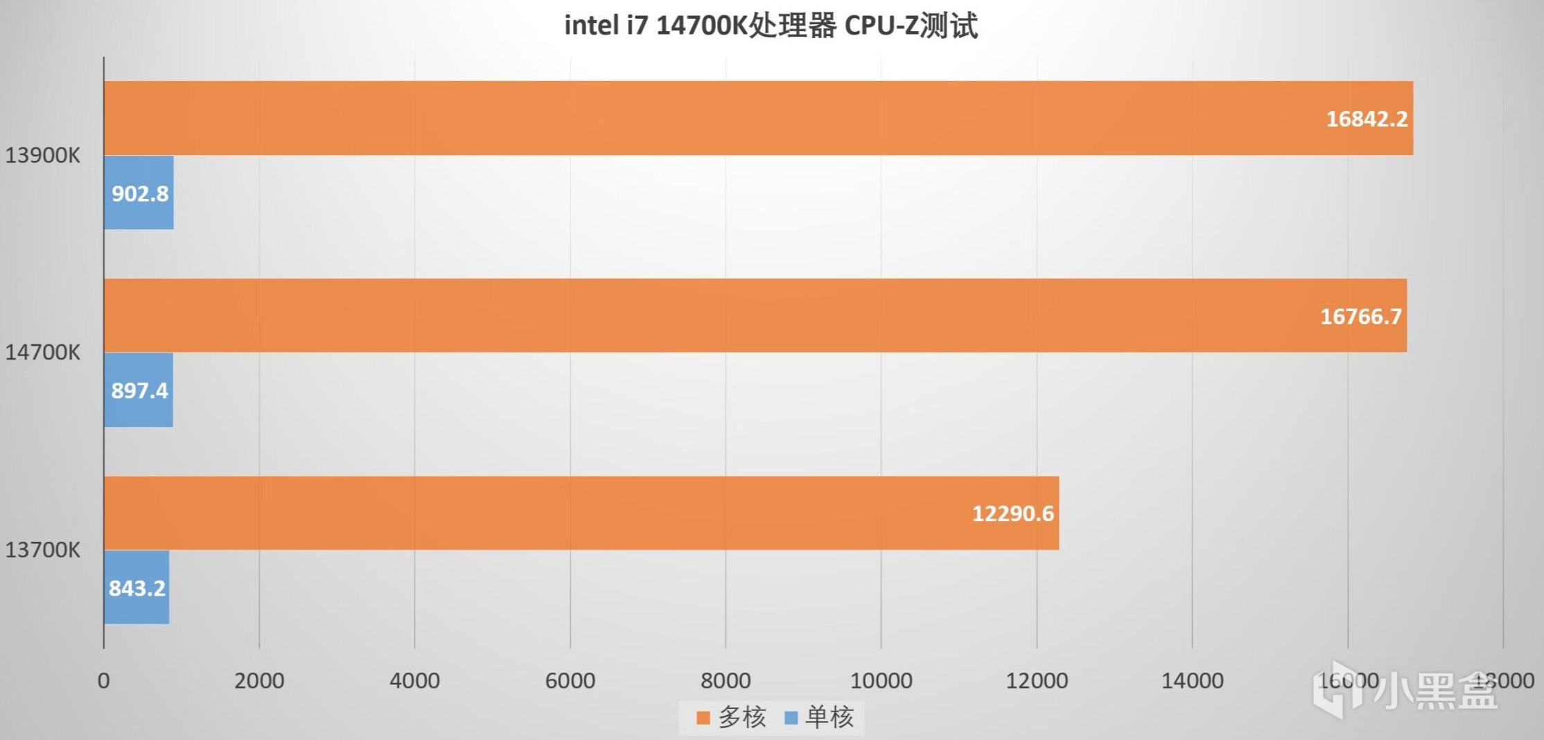 ▼横向对比下,单核性能相差不大,多核性能完美的卡在了13700K和13900K之间。14700K单核相比13700K提升约3.6%,多核相比13700K提升约18.5%。