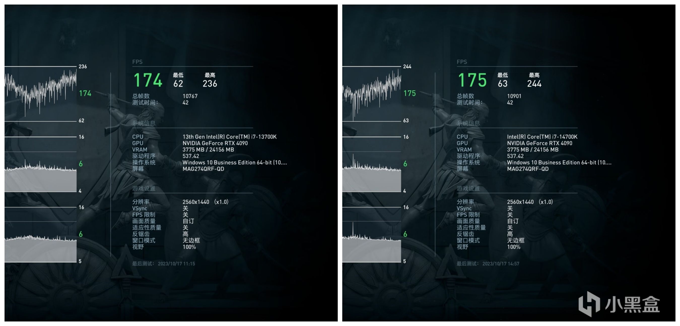 ▼最后整体的平均帧数方面,14700K略高1.01帧,就是略高。
